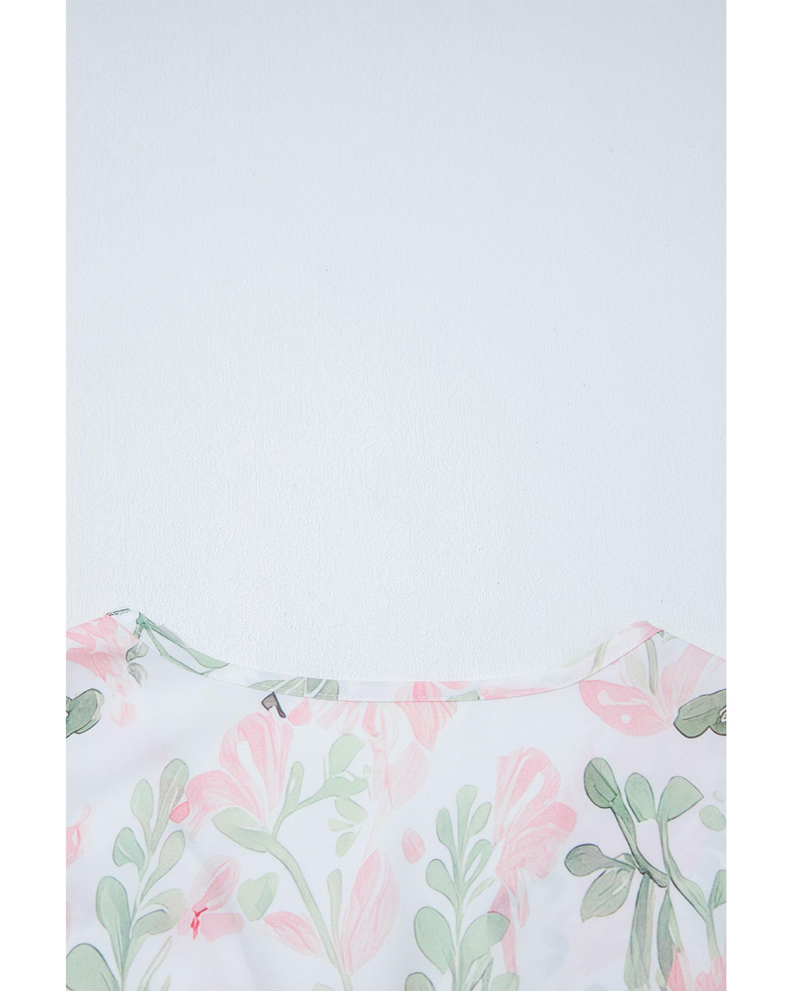 This floral puff sleeve V neck blouse features a stylish design perfect for summer. It combines elegance with a feminine touch, making it suitable for various occasions. The blouse is crafted from lightweight material, ensuring comfort and breathability.