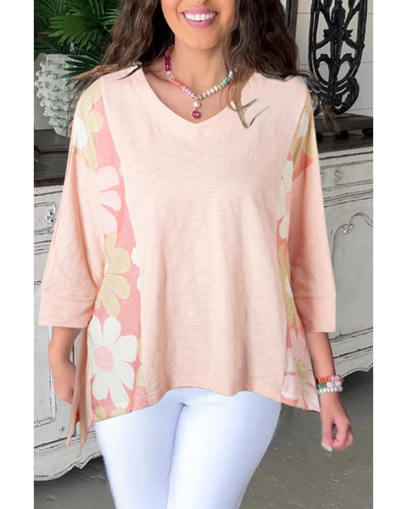 - 1 x Pink Flower Patchwork Exposed Seam Oversized High Low Top