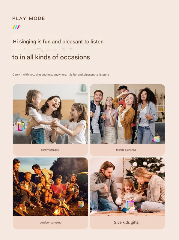 Bring entertainment anywhere with this portable mini karaoke machine that combines a Bluetooth speaker, wireless microphone, and vibrant RGB lighting effects. Its compact design makes it suitable for home parties, outdoor gatherings, and family fun, offering a versatile and enjoyable karaoke experience.