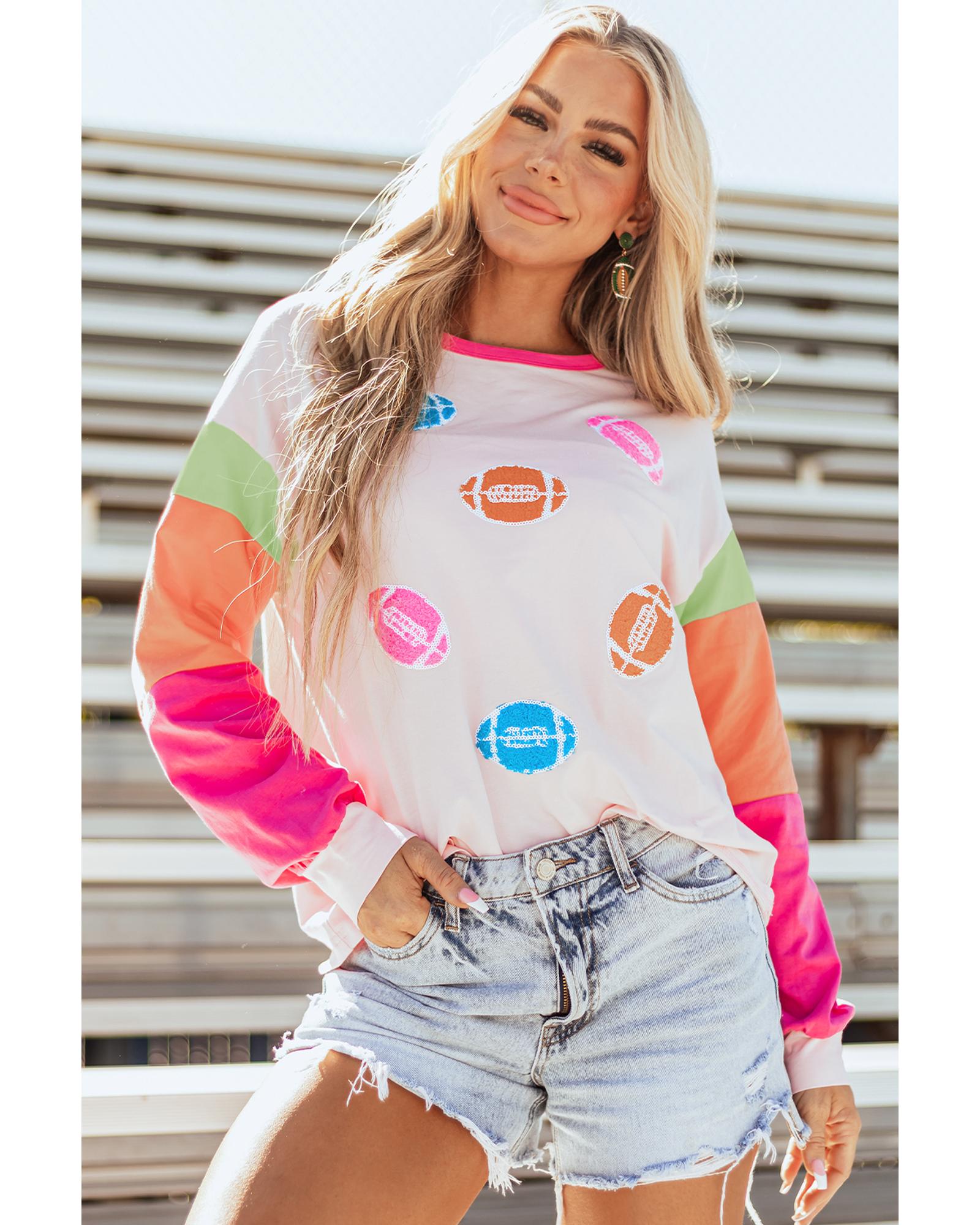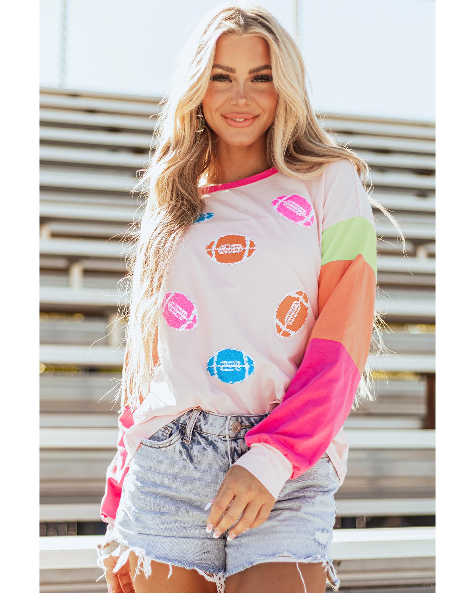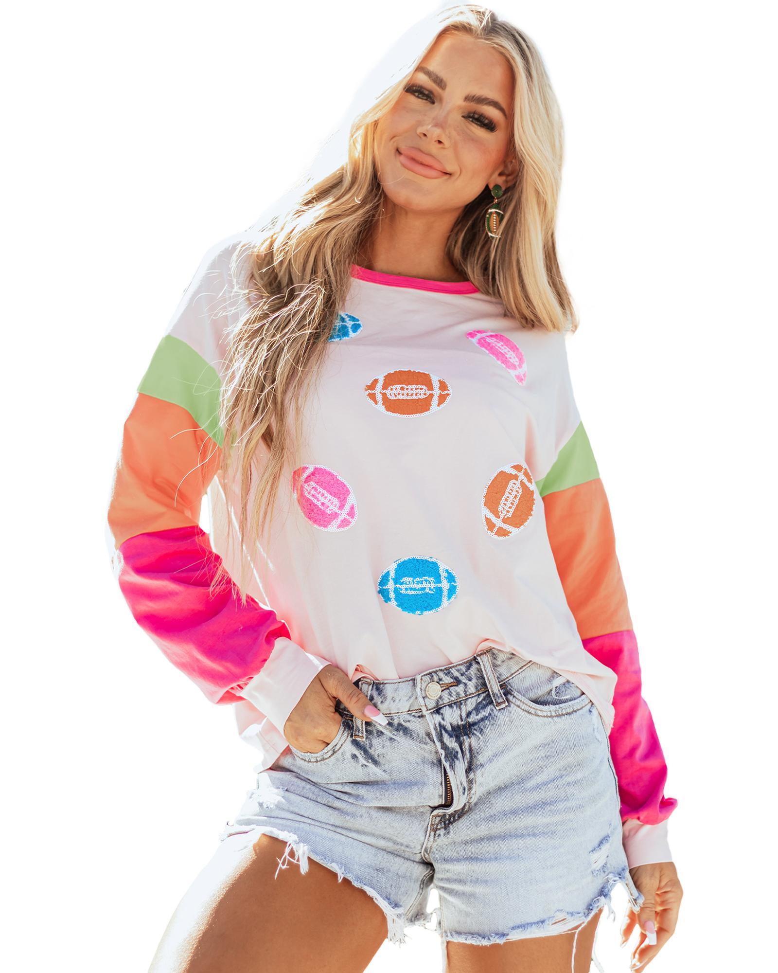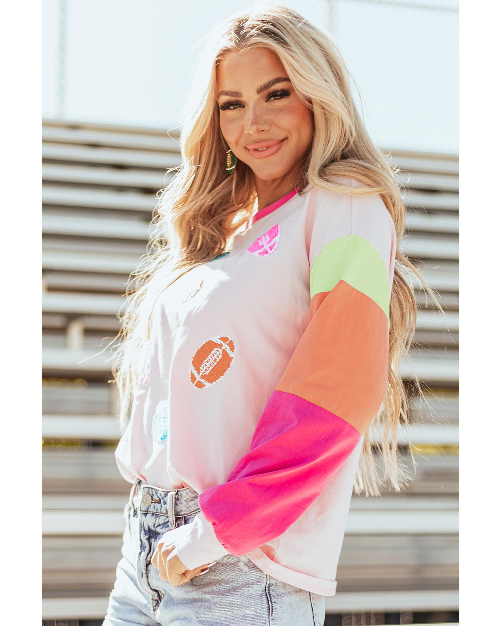 Pink GAME DAY Rugby Football Graphic Color Block Sleeve Top – M