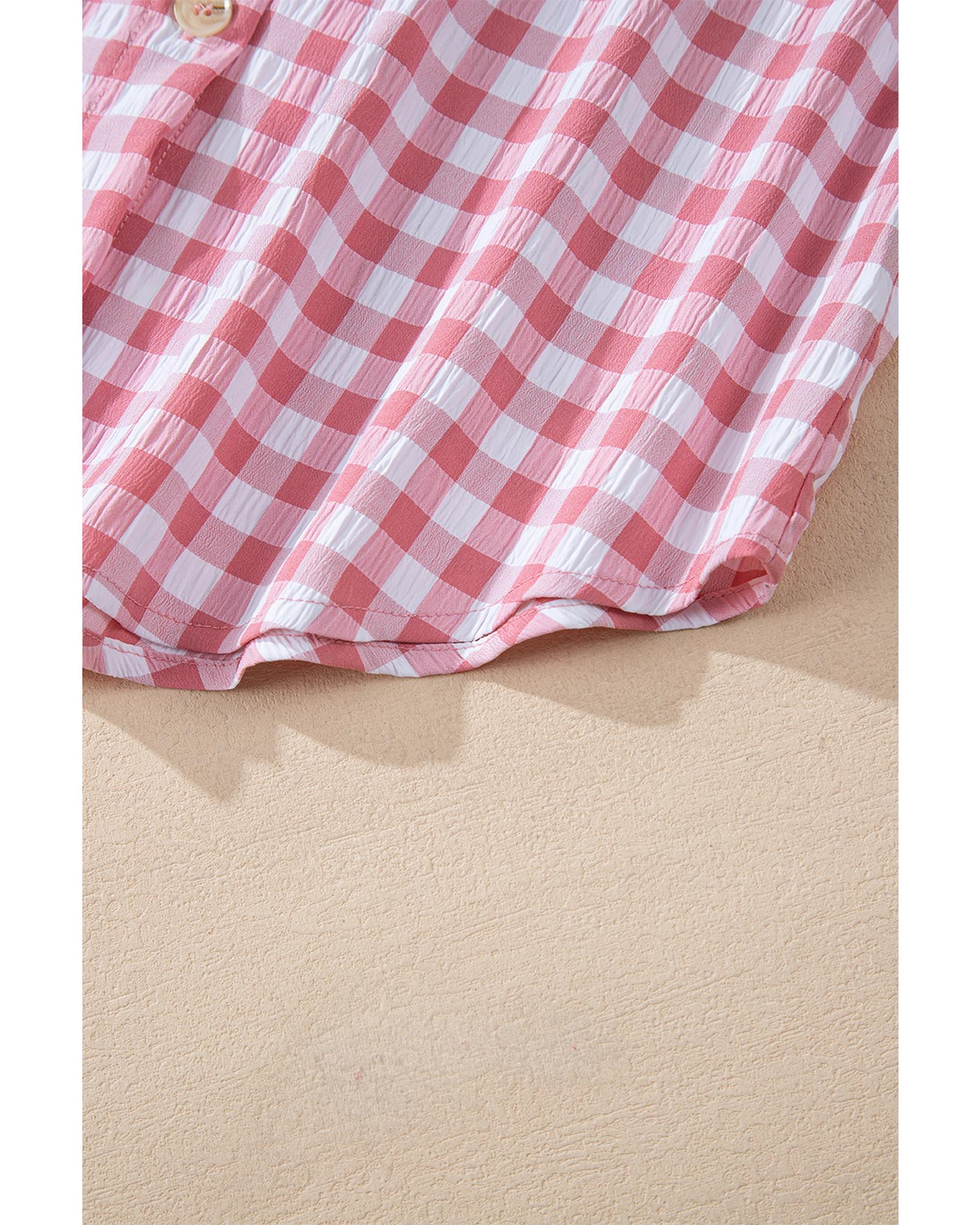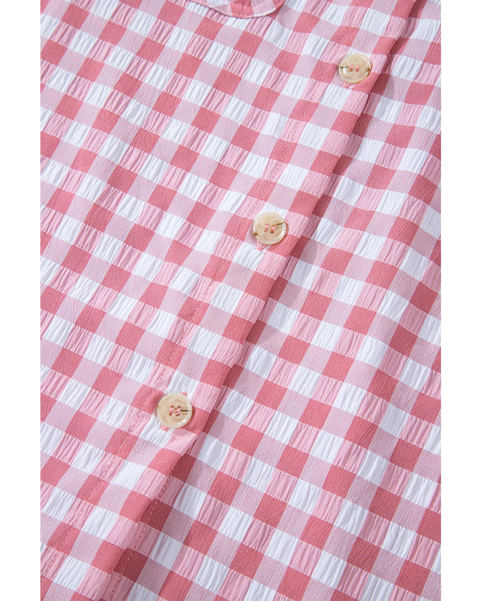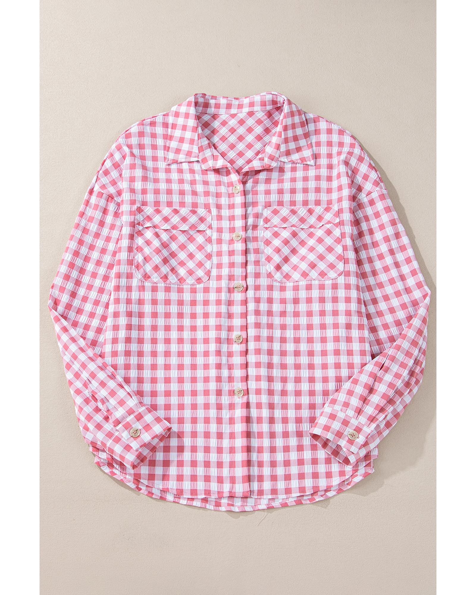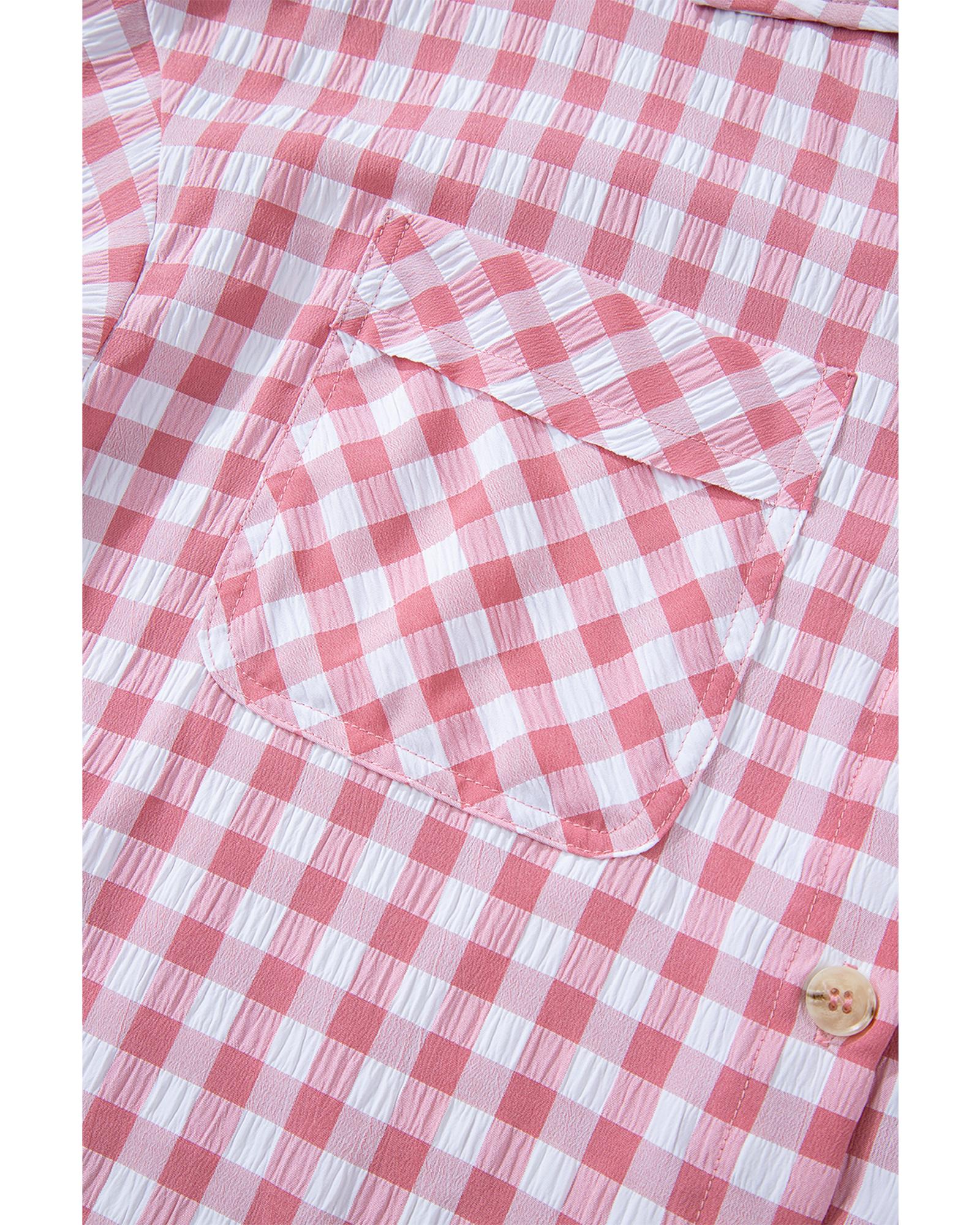 This collared shirt features a classic gingham print with a stylish and fitted design. It is versatile for various occasions and offers both functionality and a timeless look.