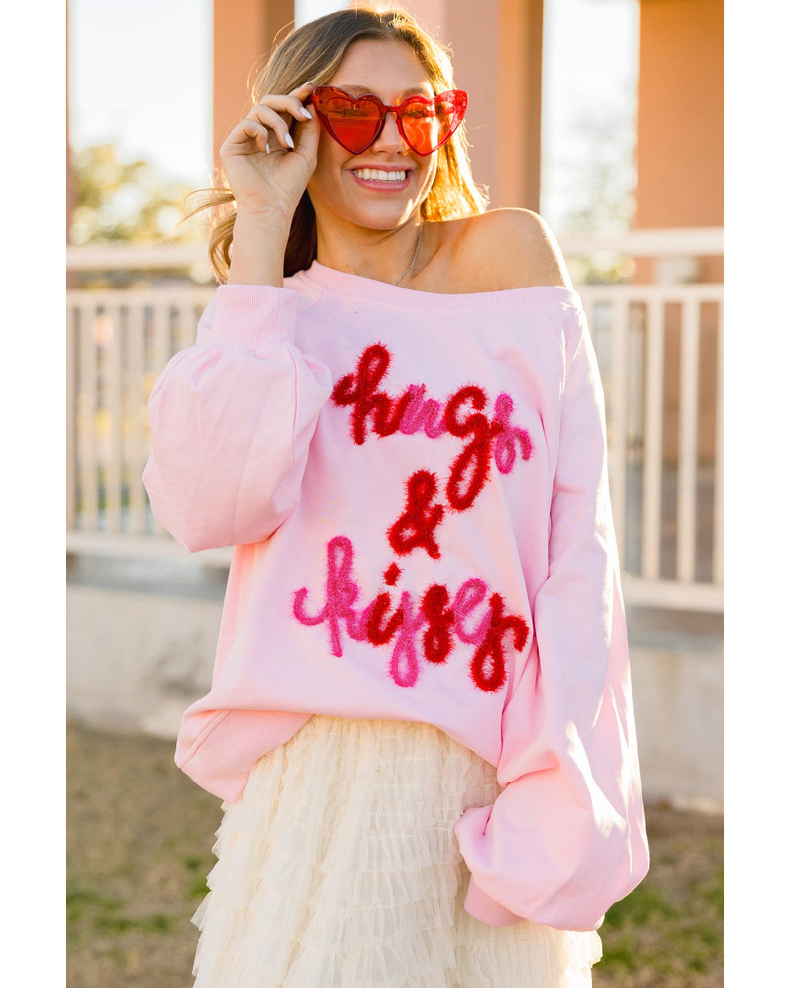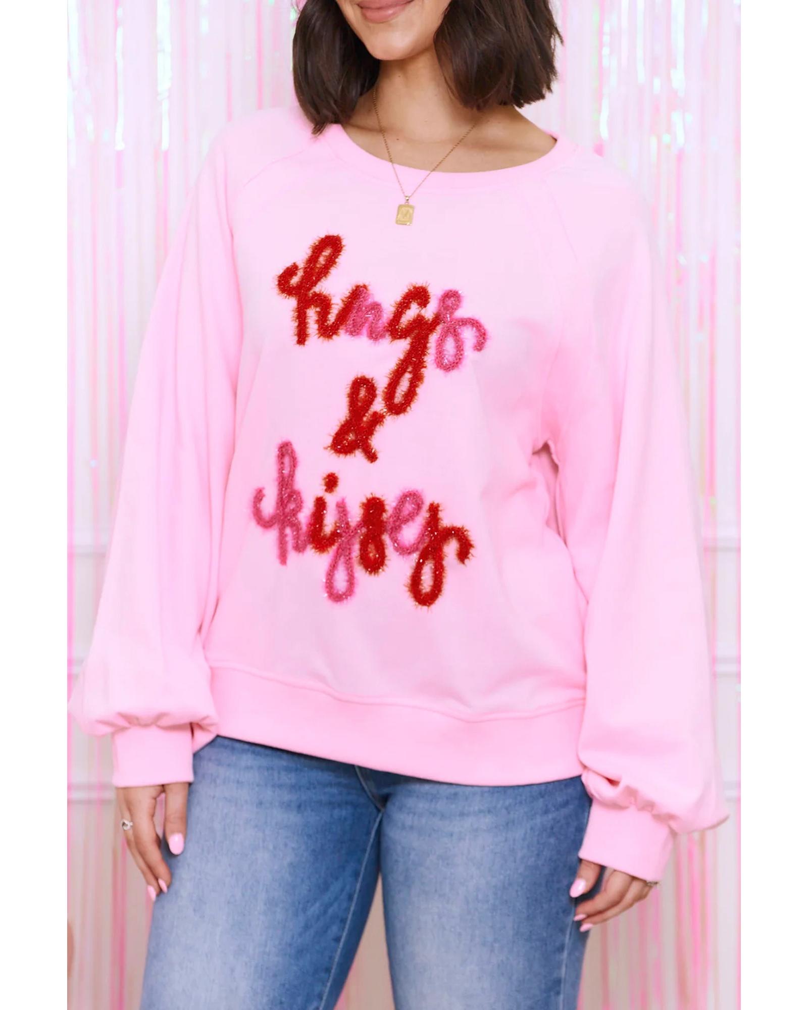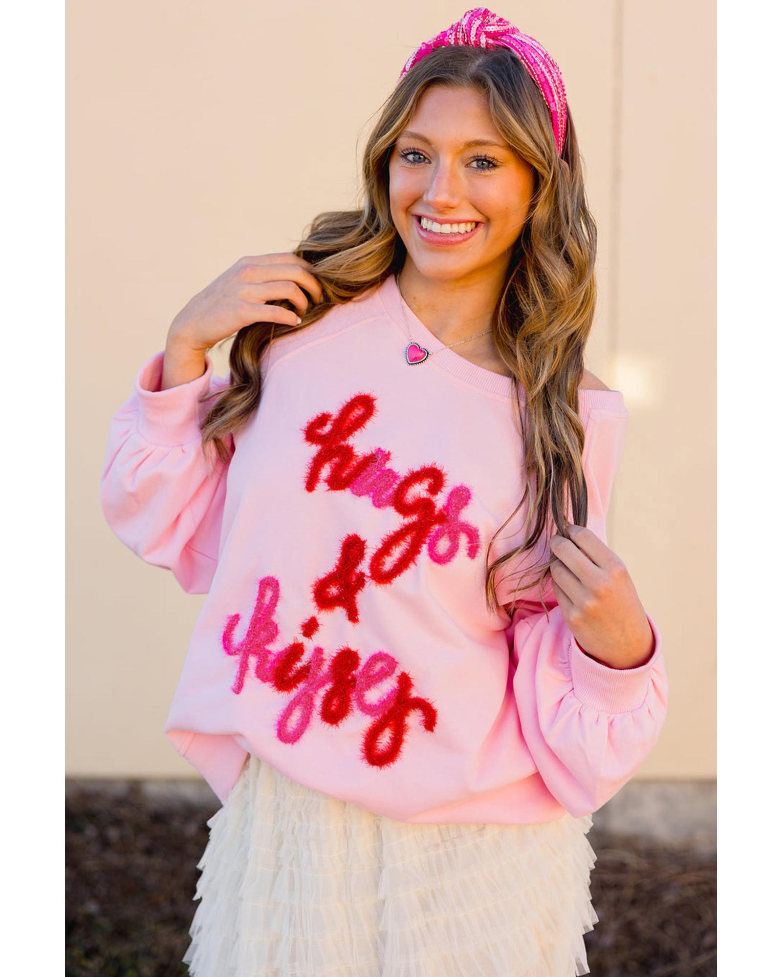 Pink Hugs and Kisses Pop Up Embroidered Raglan Sleeve Sweatshirt – L