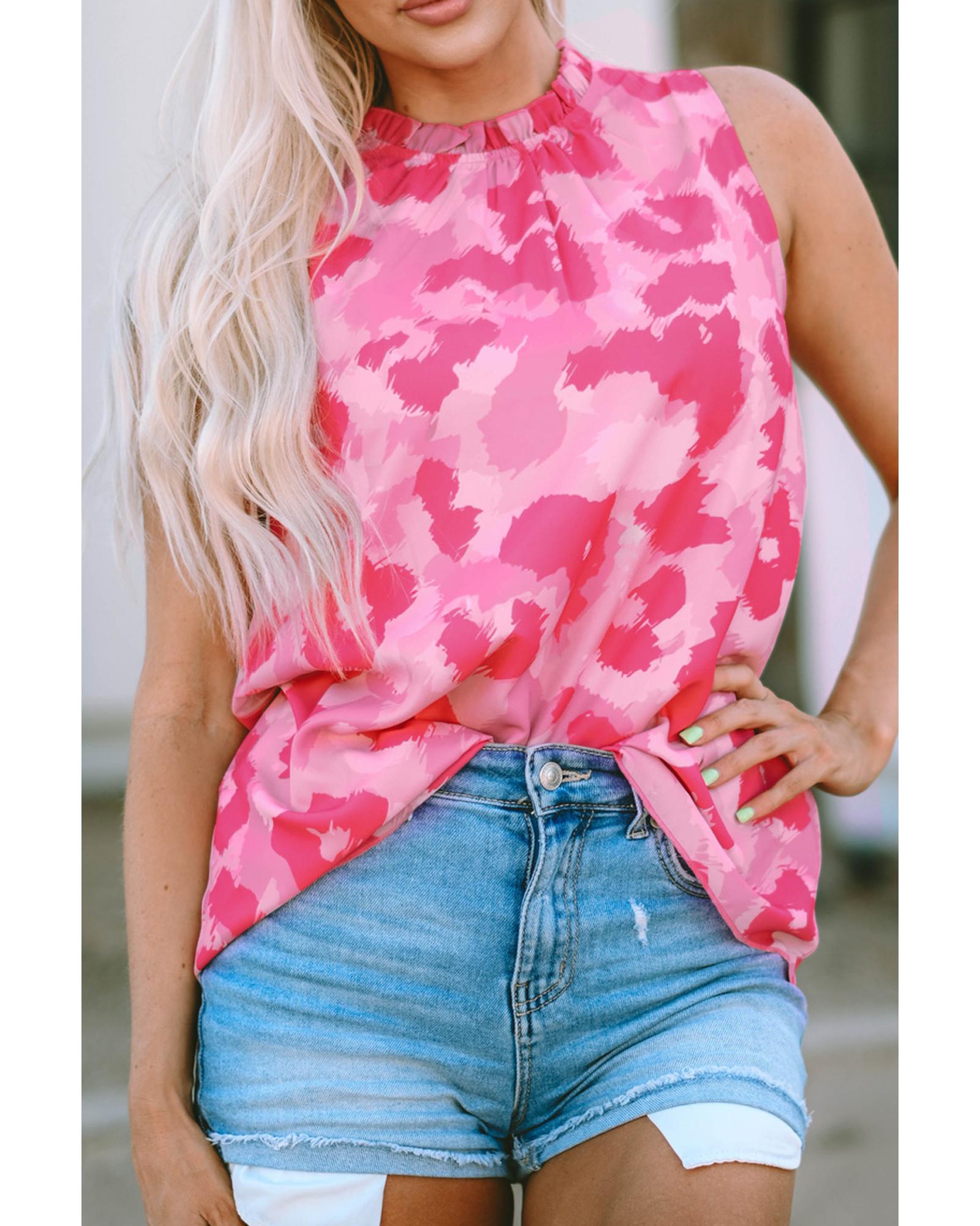 Pink Leopard Frilled Collar Printed Tank Top – XL