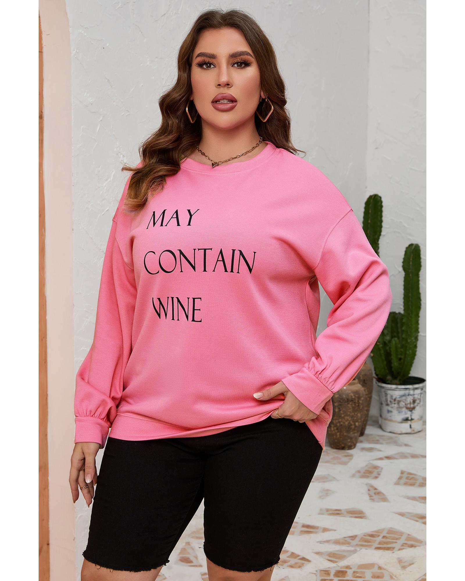 Pink May Contain Wine Crew Neck Plus Size Sweatshirt - 2X