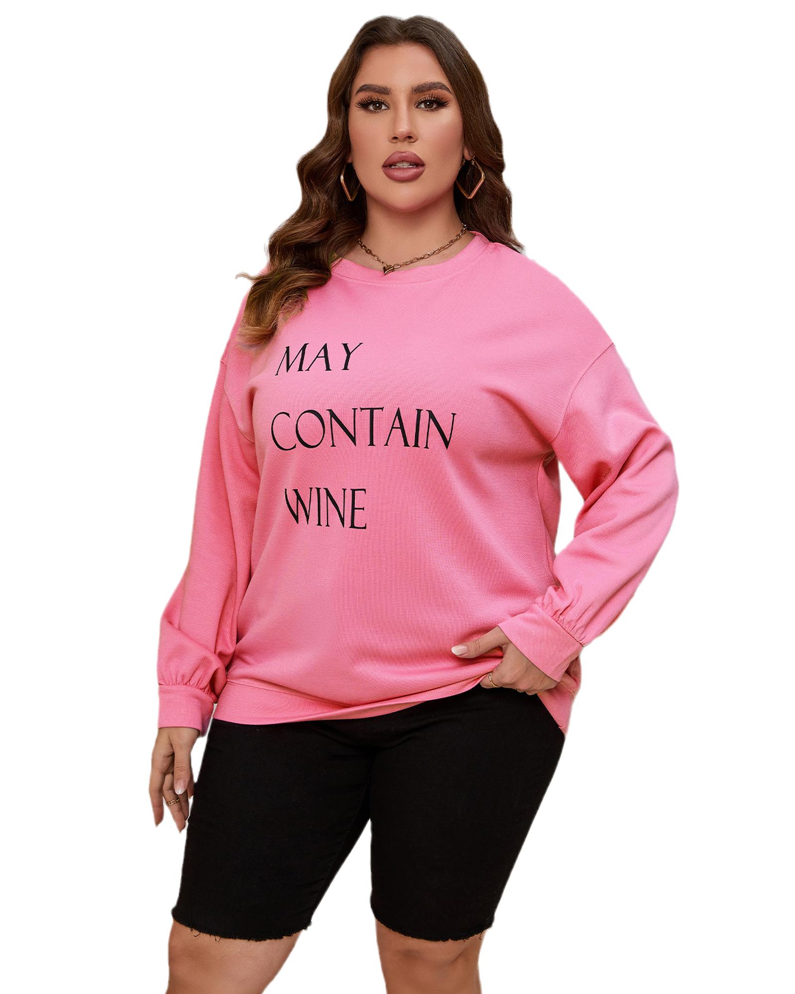 Pink May Contain Wine Crew Neck Plus Size Sweatshirt - 2X Original price was: $64.99.Current price is: $34.99.