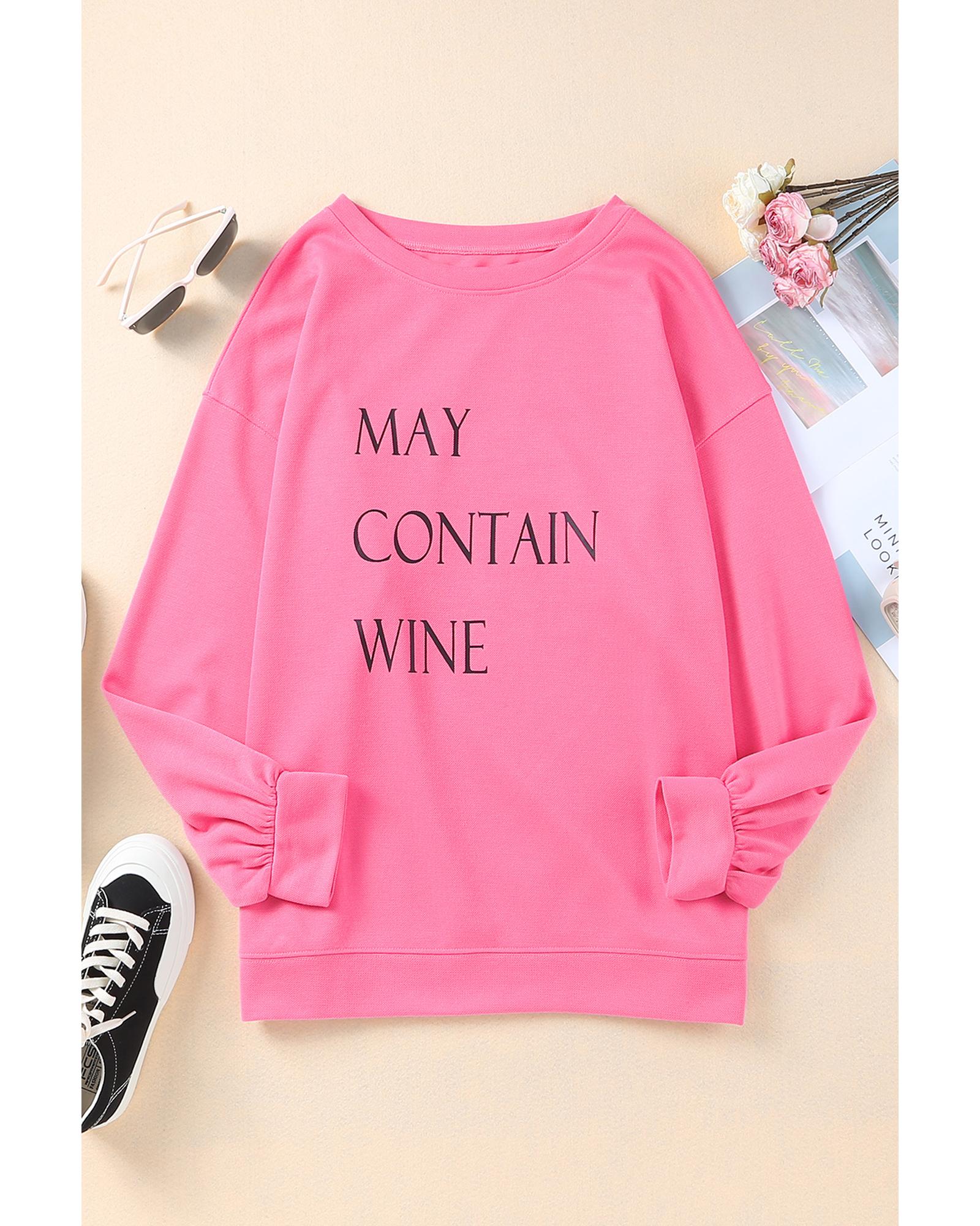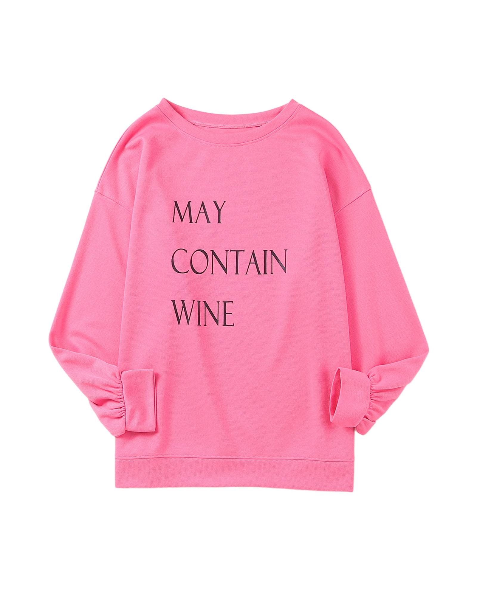 Pink May Contain Wine Crew Neck Plus Size Sweatshirt - 5X