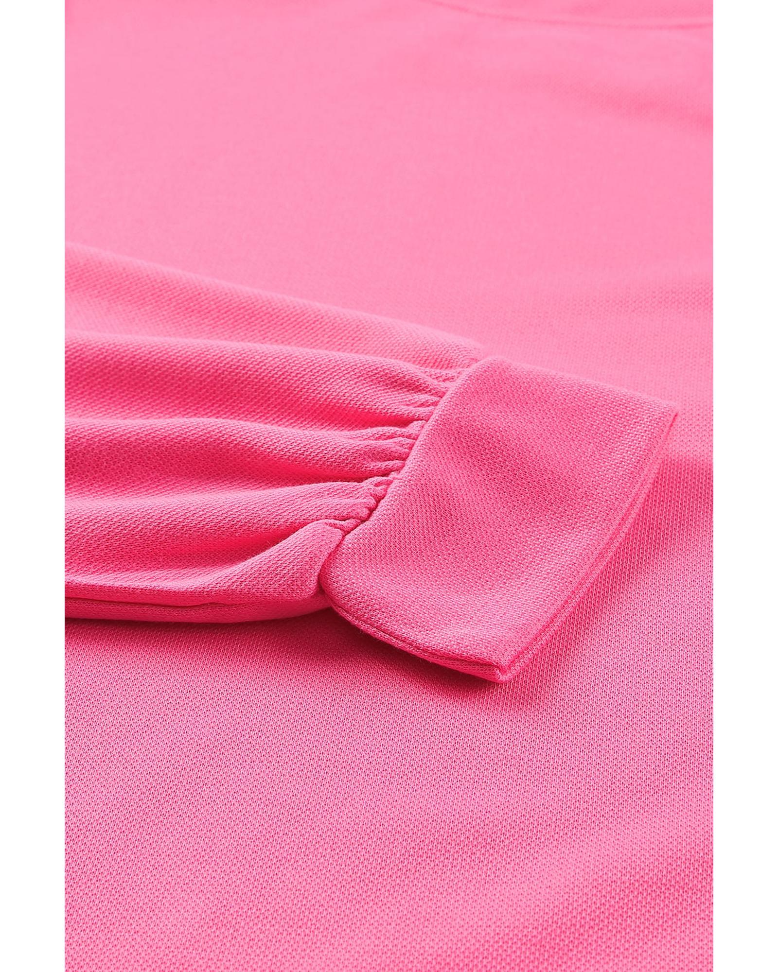 Bright Pink Seamed Back High Low Hem V Neck Cuffed Sleeve Plus Size Tee - 1X