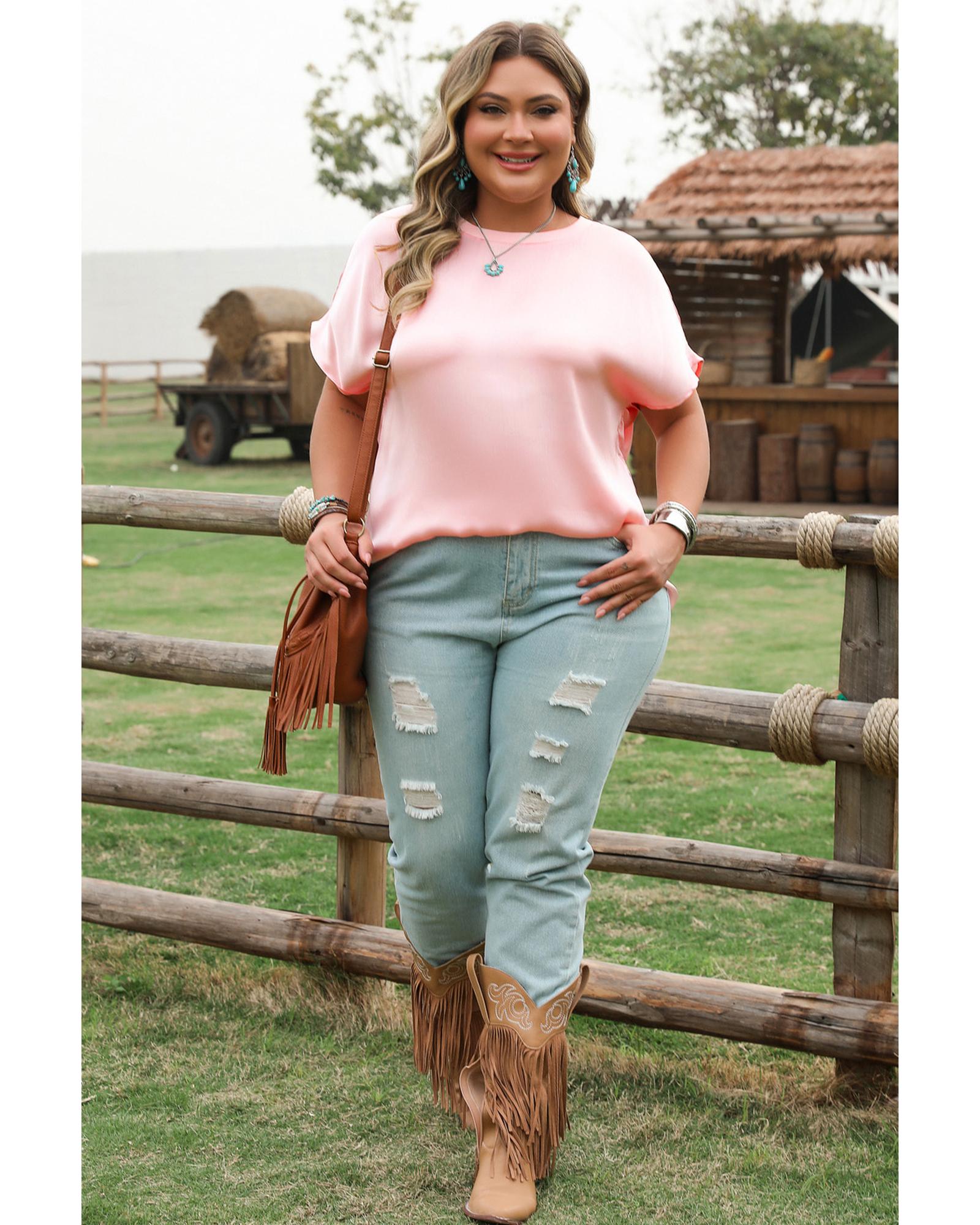 Pink Metallic Gloss Short Batwing Sleeve Plus Size Top – 2X