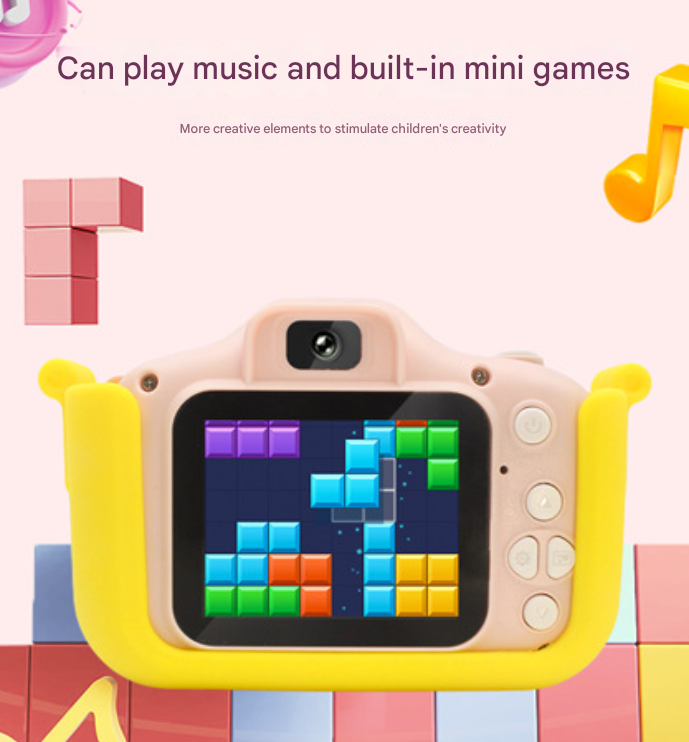 This adorable cat-themed digital camera is designed to make photography fun and engaging for children. Featuring a charming pastel gradient and playful paw details, it allows young users to explore their creativity by capturing high-quality photos and videos. The camera comes with a large storage capacity and is built to be durable and easy to operate, making it an ideal gift for young aspiring photographers.