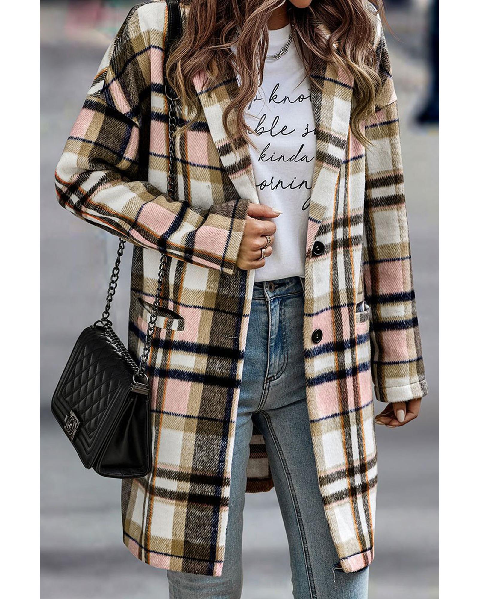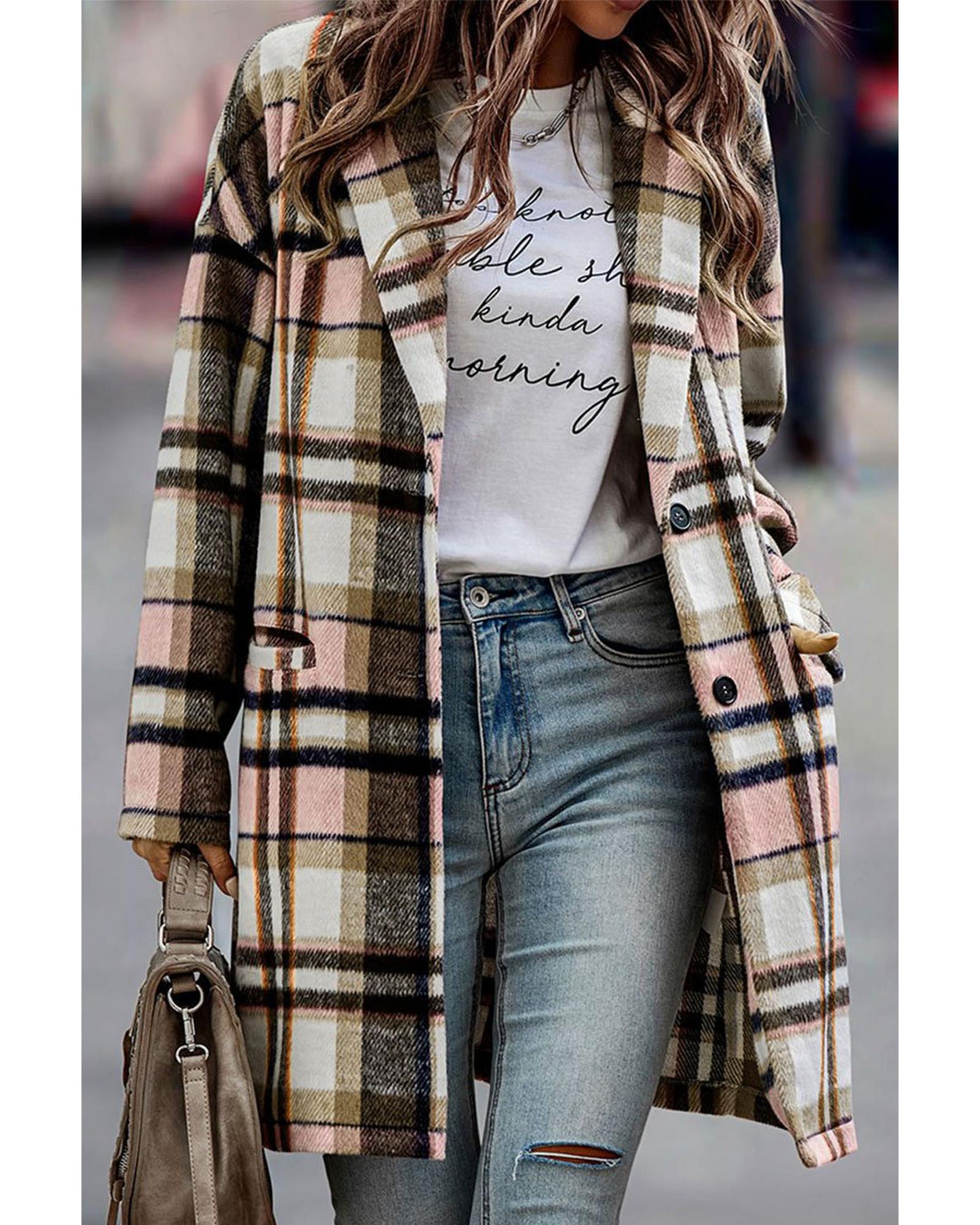 This pink plaid button-up lapel jacket combines a trendy fitted silhouette with classic design elements. Crafted with attention to detail and using premium materials, it offers a luxurious look and comfortable wear. The jacket features an elegant design that provides a timeless appeal, making it suitable for various occasions.