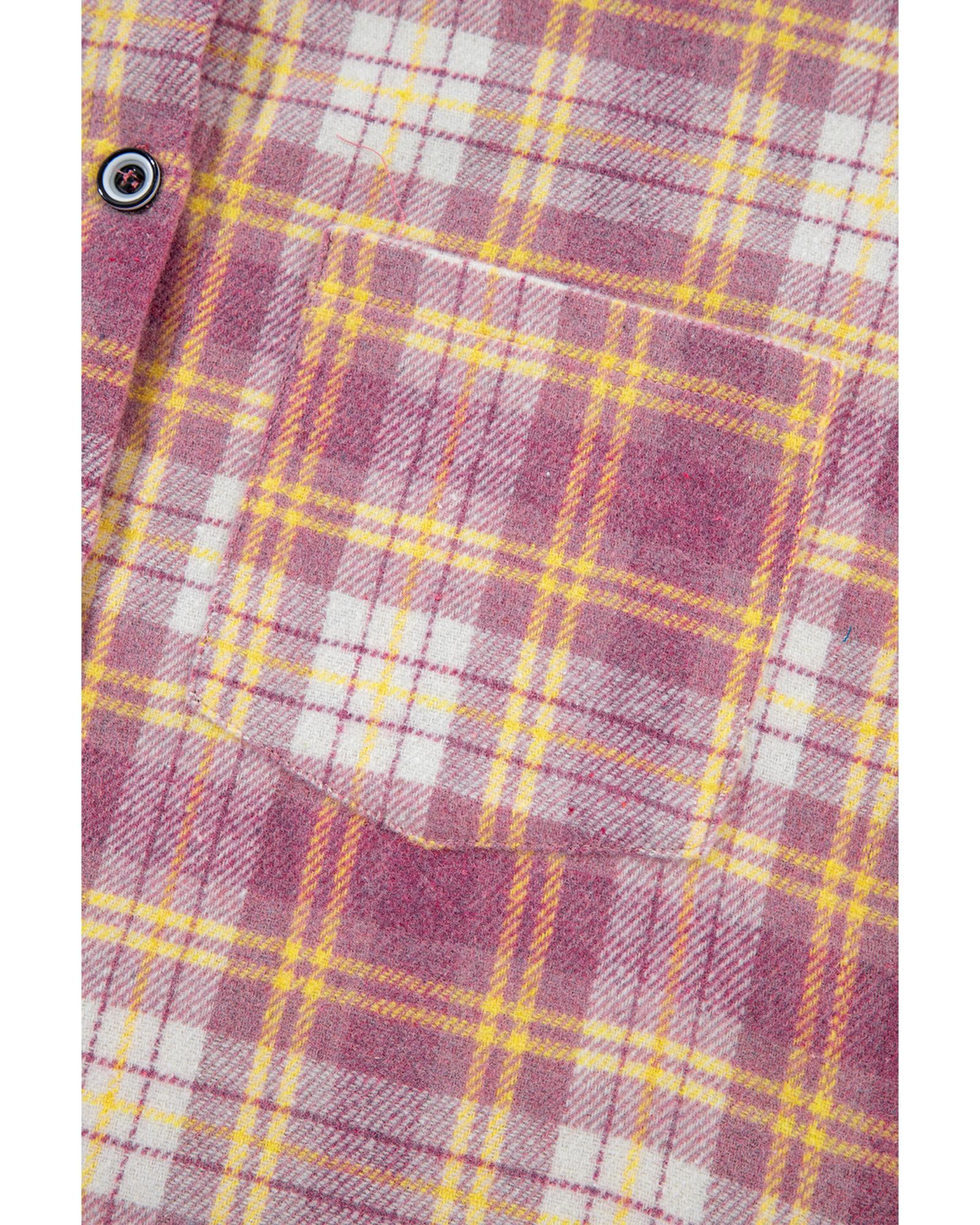 • Features a pink plaid pattern with a chest pocket for added functionality