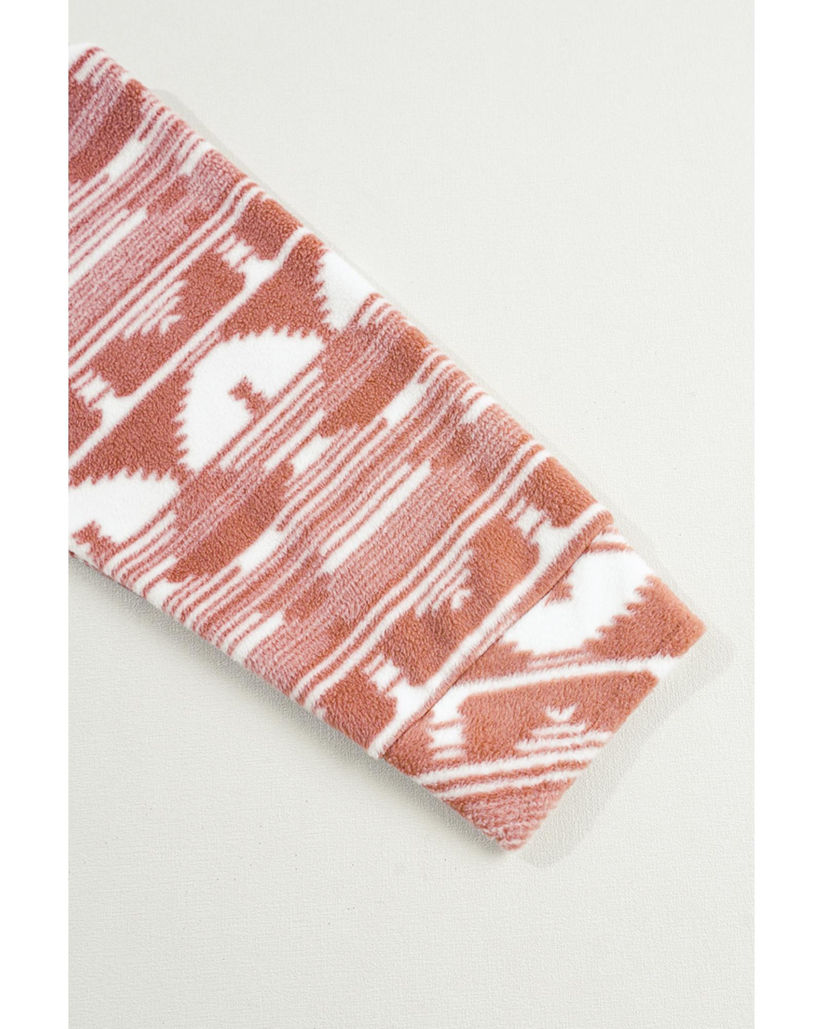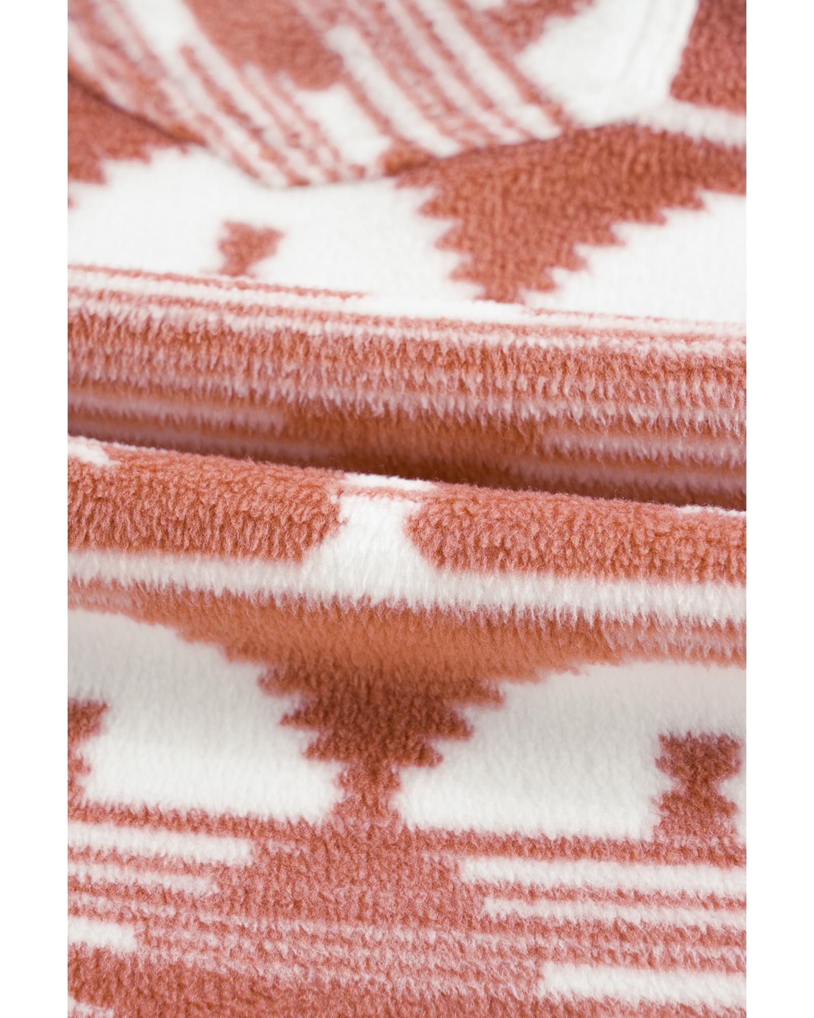 This plus size shacket features a stylish Aztec print and functional chest pockets, making it a versatile addition to your wardrobe. Crafted from thick fleece material, it offers warmth and comfort for various occasions and seasons. Designed with a trendy fitted look, it provides a fashionable western touch suitable for different styles.
