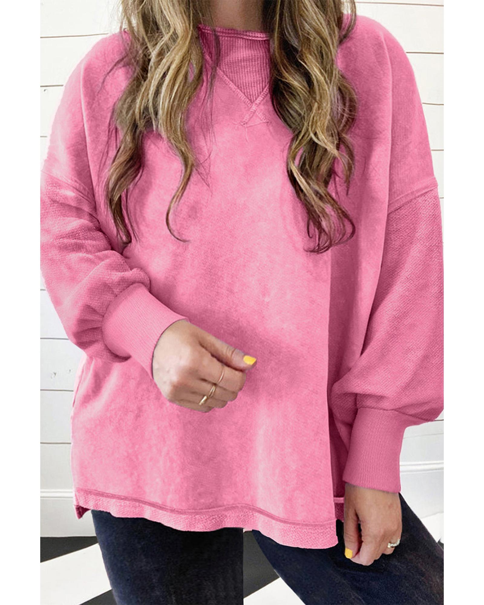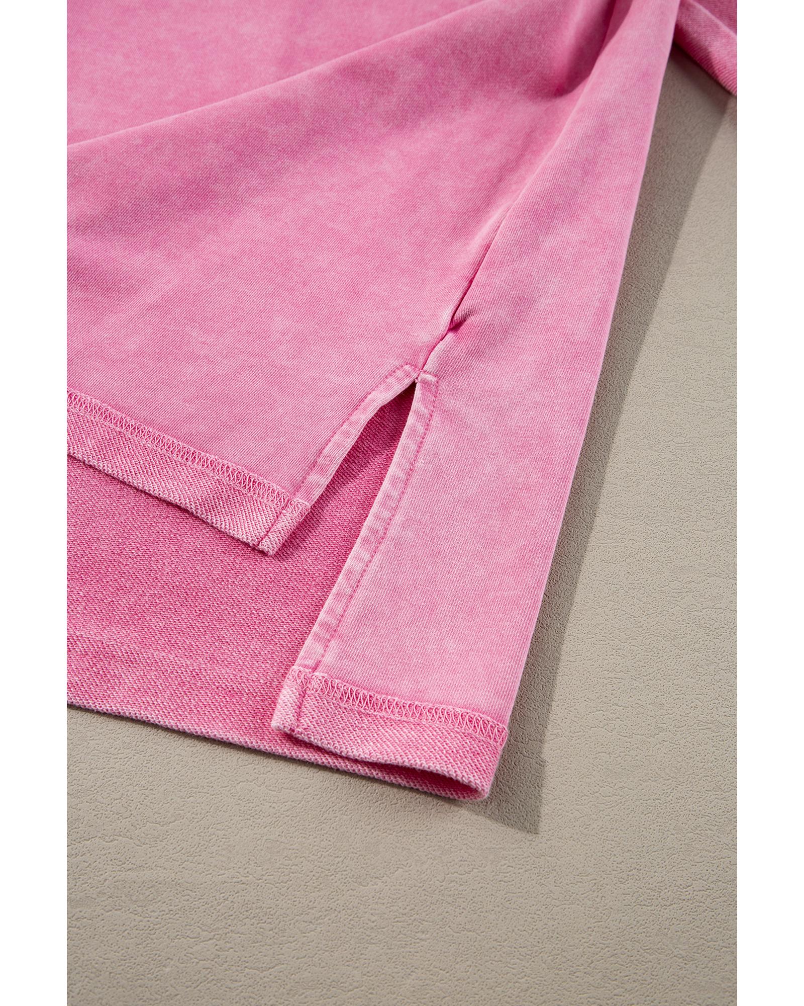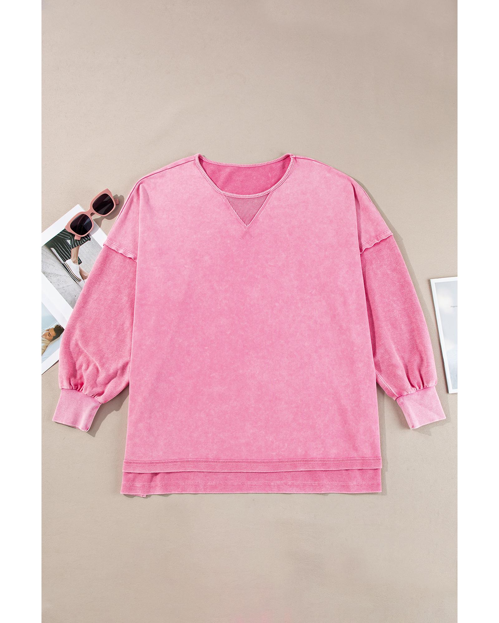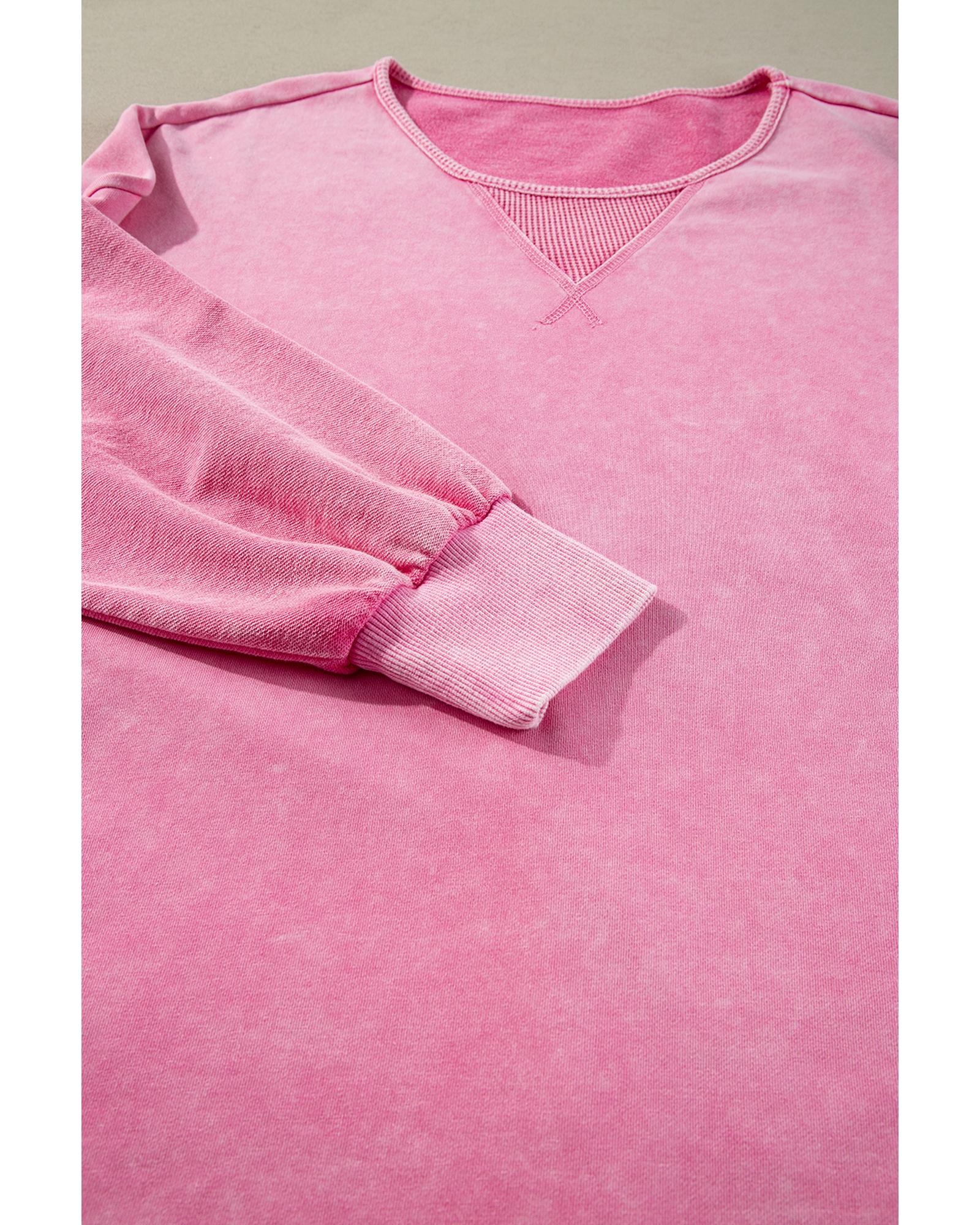 Pink Plus Size Mineral Wash Drop Shoulder Round Neck Sweatshirt – 1X