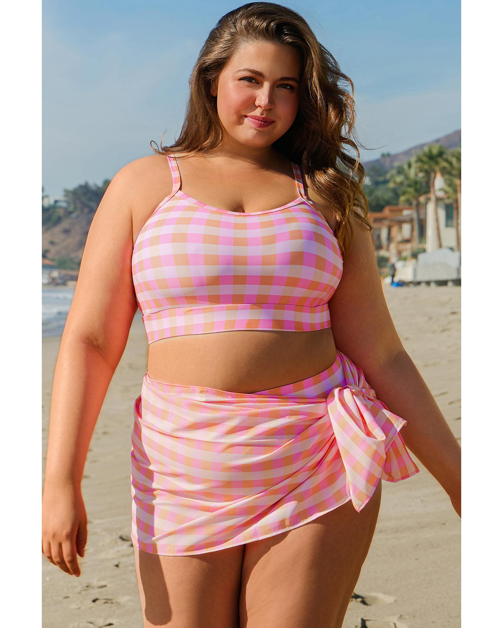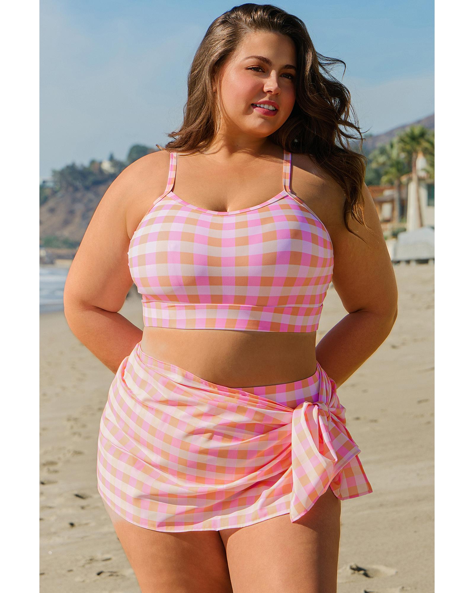Pink Plus Size Plaid Print High Waist Bikini Set – 3X