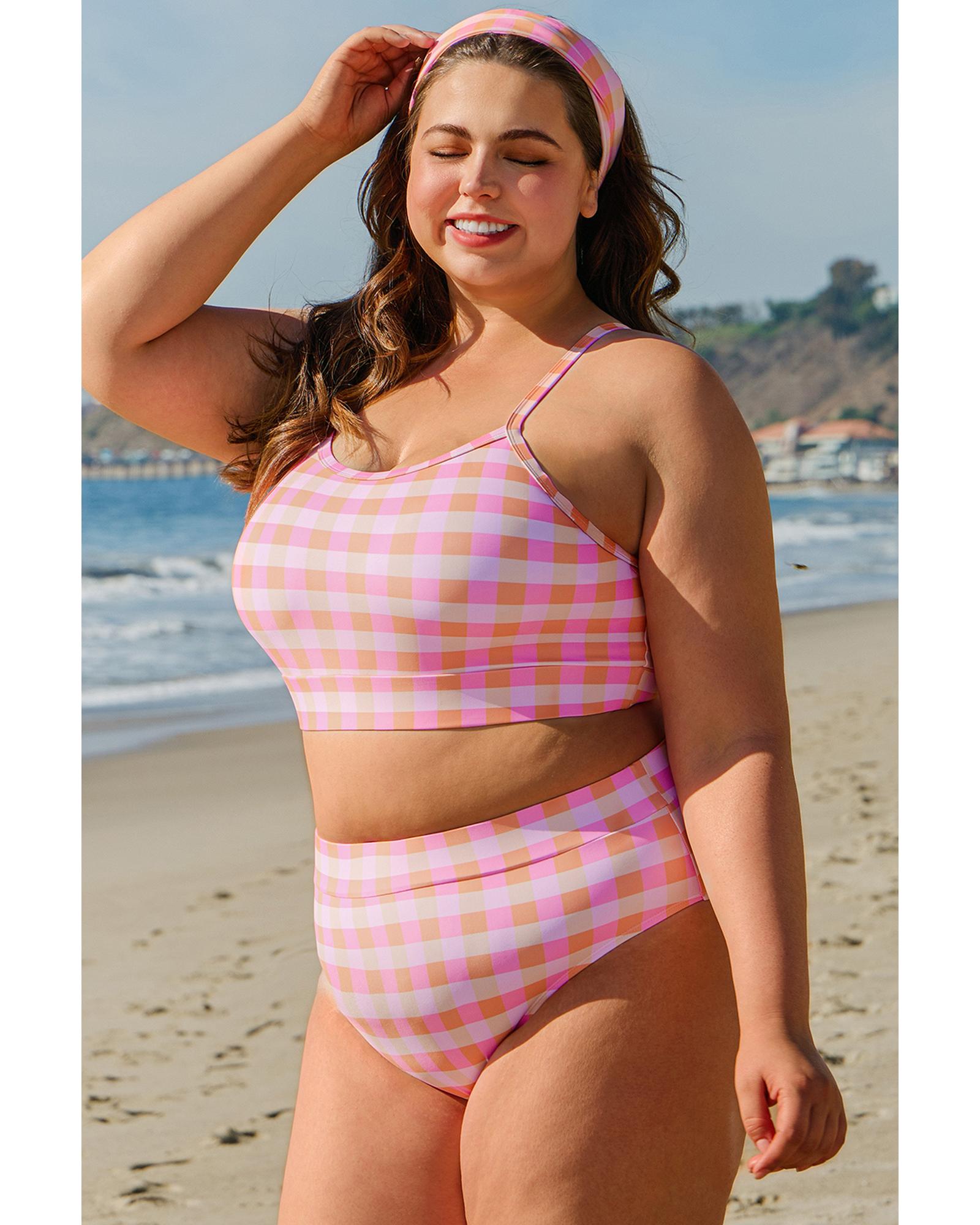 Pink Plus Size Plaid Print High Waist Bikini Set – 4X