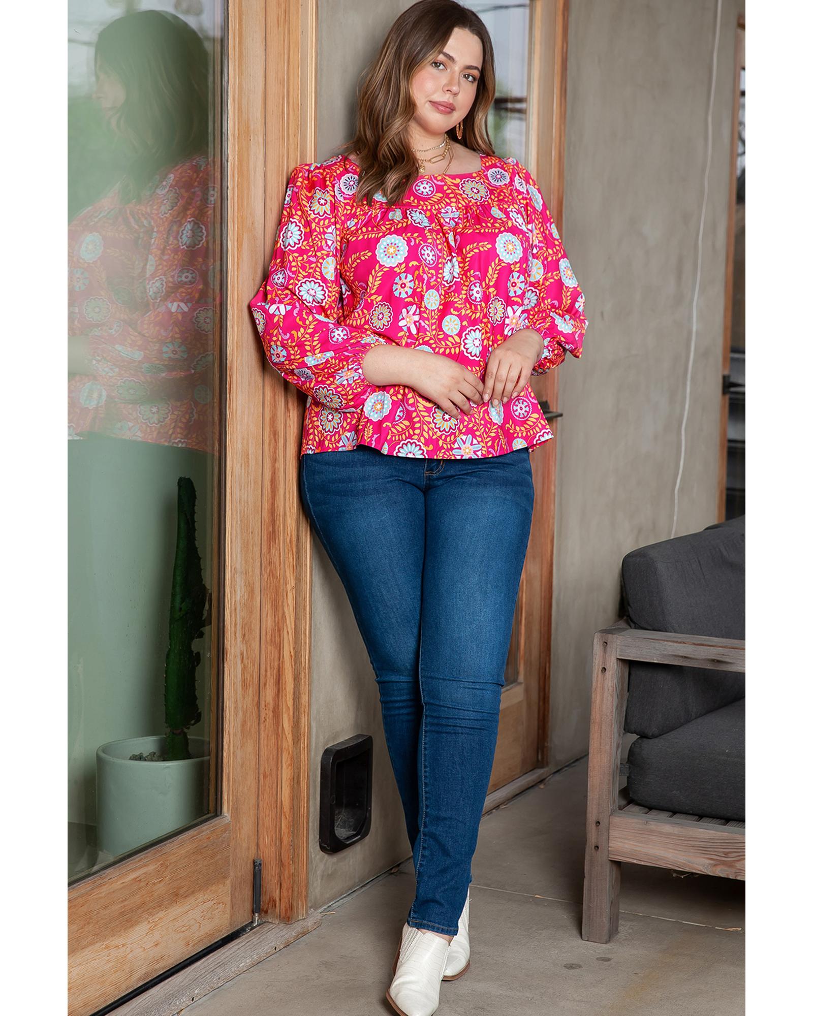 This plus size floral blouse features a trendy fitted design with a square neckline and long puff sleeves. It is lightweight and comfortable, suitable for full-figured women who want to express their unique fashion style. The blouse offers a loose fit that enhances feminine charm and versatility for various occasions.