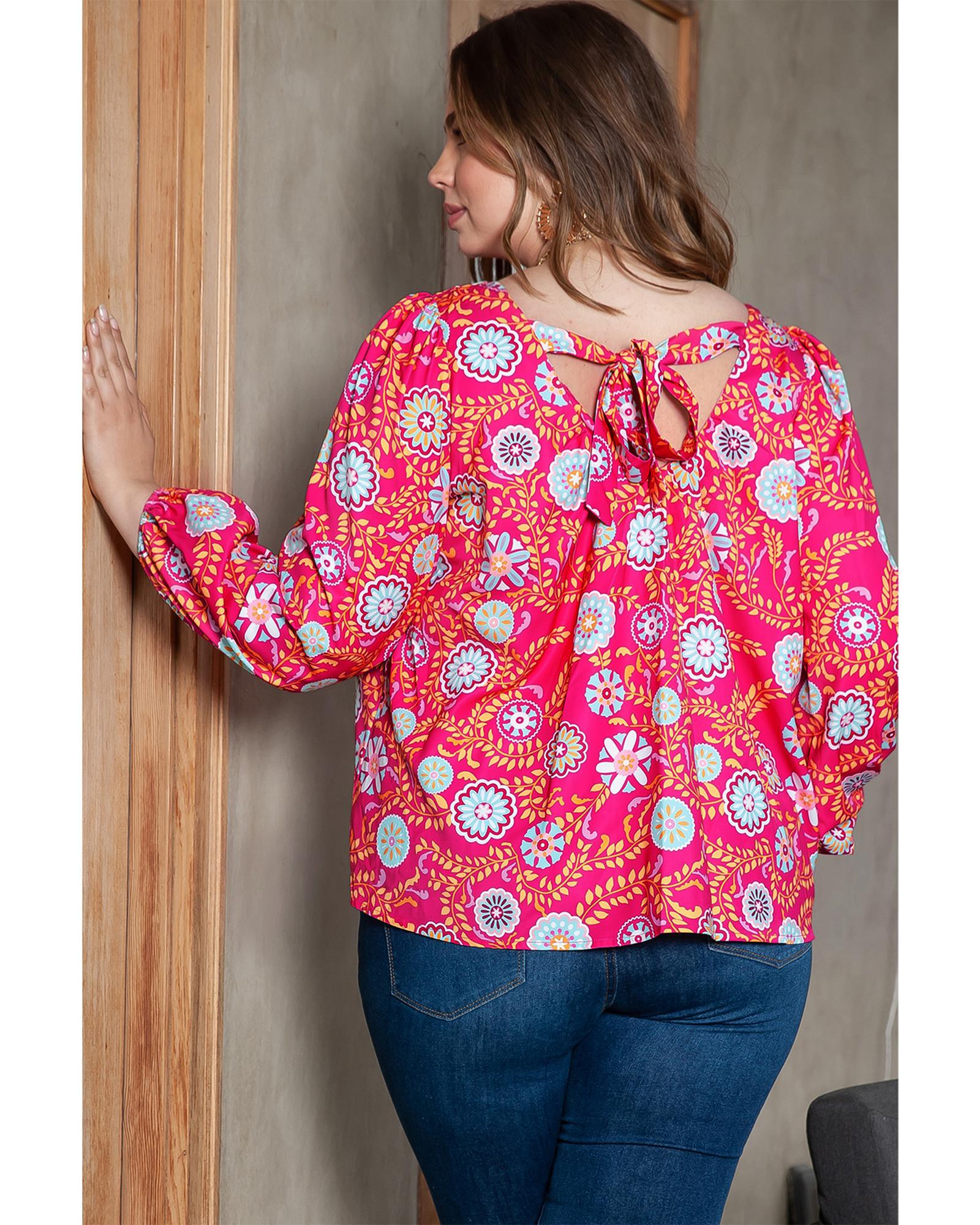 Pink Plus Size Square Neck Floral Blouse – 1X