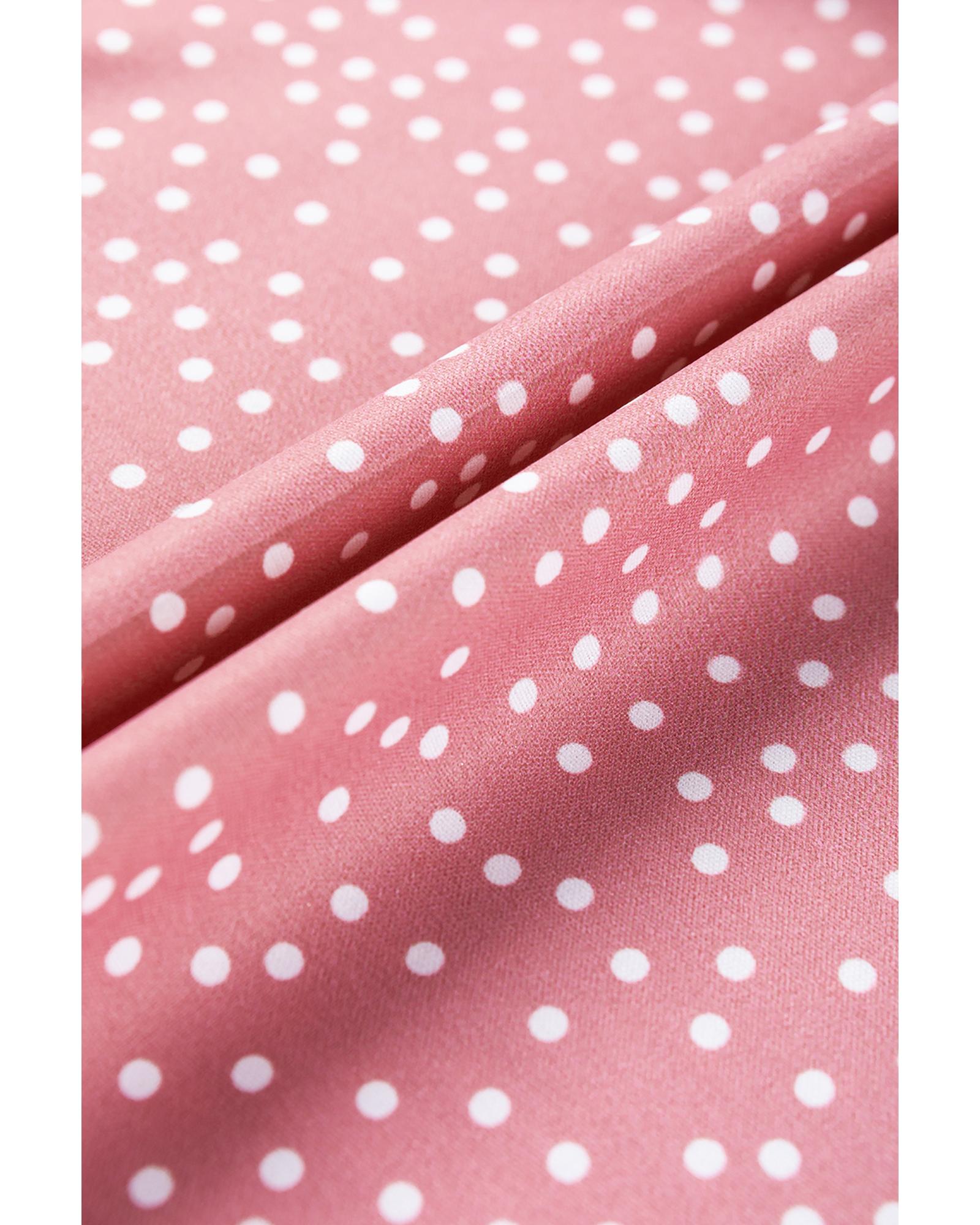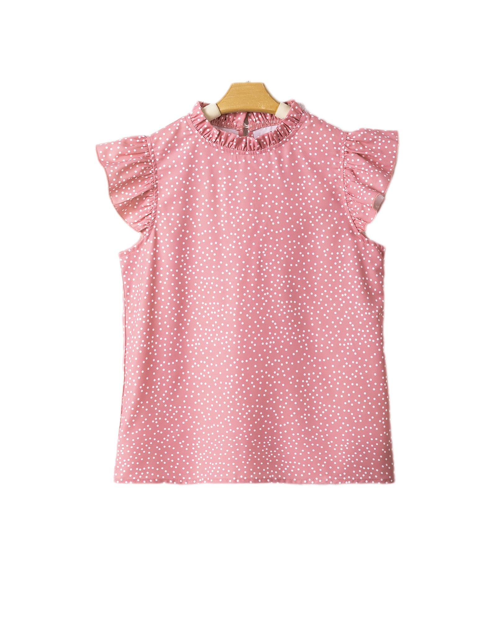 Pink Polka Dots Ruffle Flutter Sleeve Frilled Neck Blouse – XL