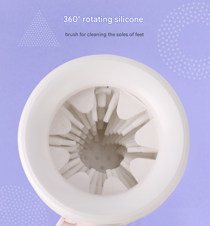Pink Portable Dog Paw Cleaner Cup – Semi-Automatic 360-degree Rotating Foot Washer with Soft Silicone Bristles
