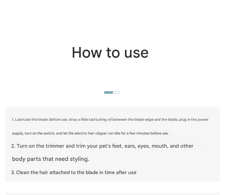 • Application: Detail trimming for paws, eyes, ears, and face
