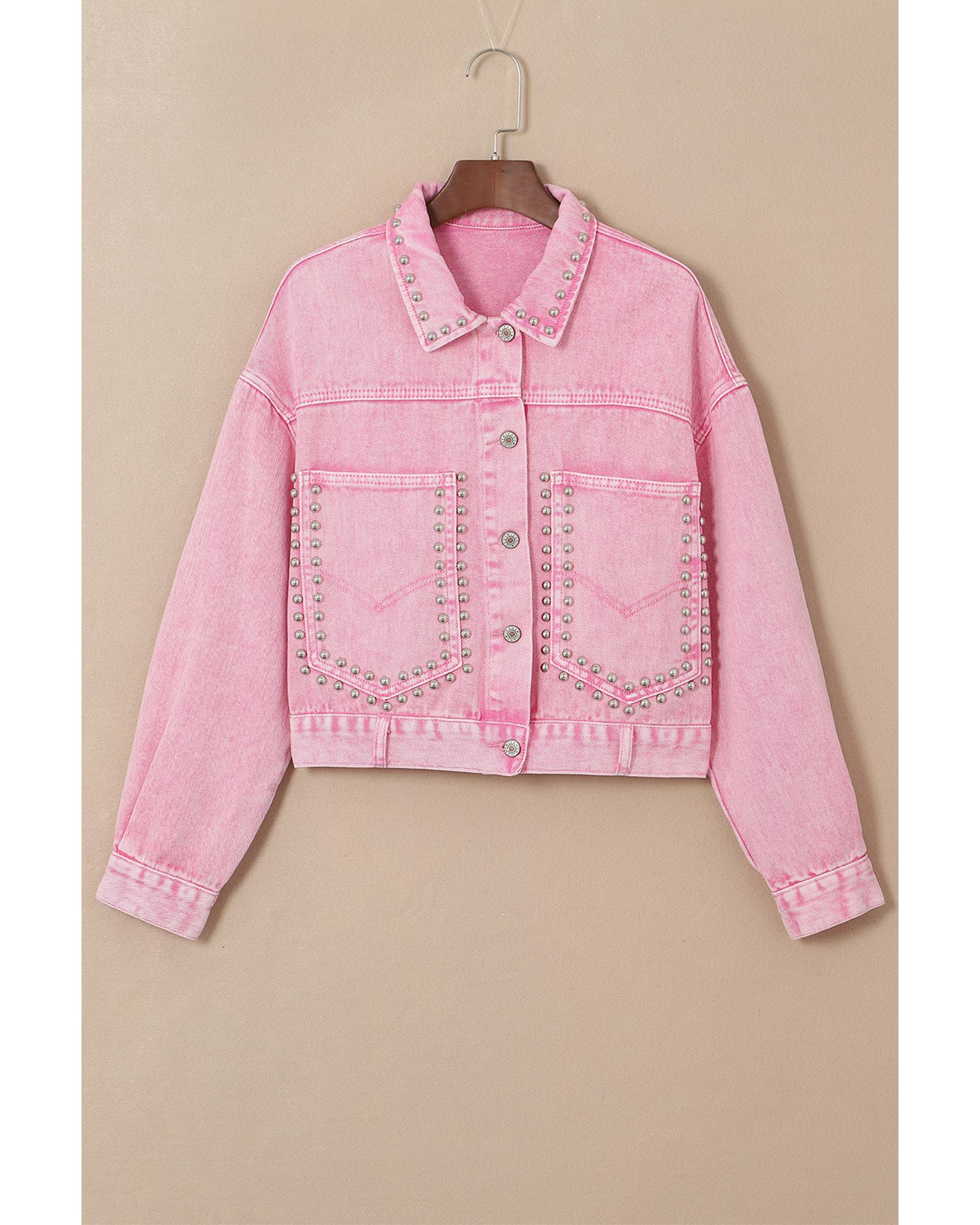 Pink Rivet Studded Pocketed Denim Jacket - S Original price was: $96.99.Current price is: $52.99.