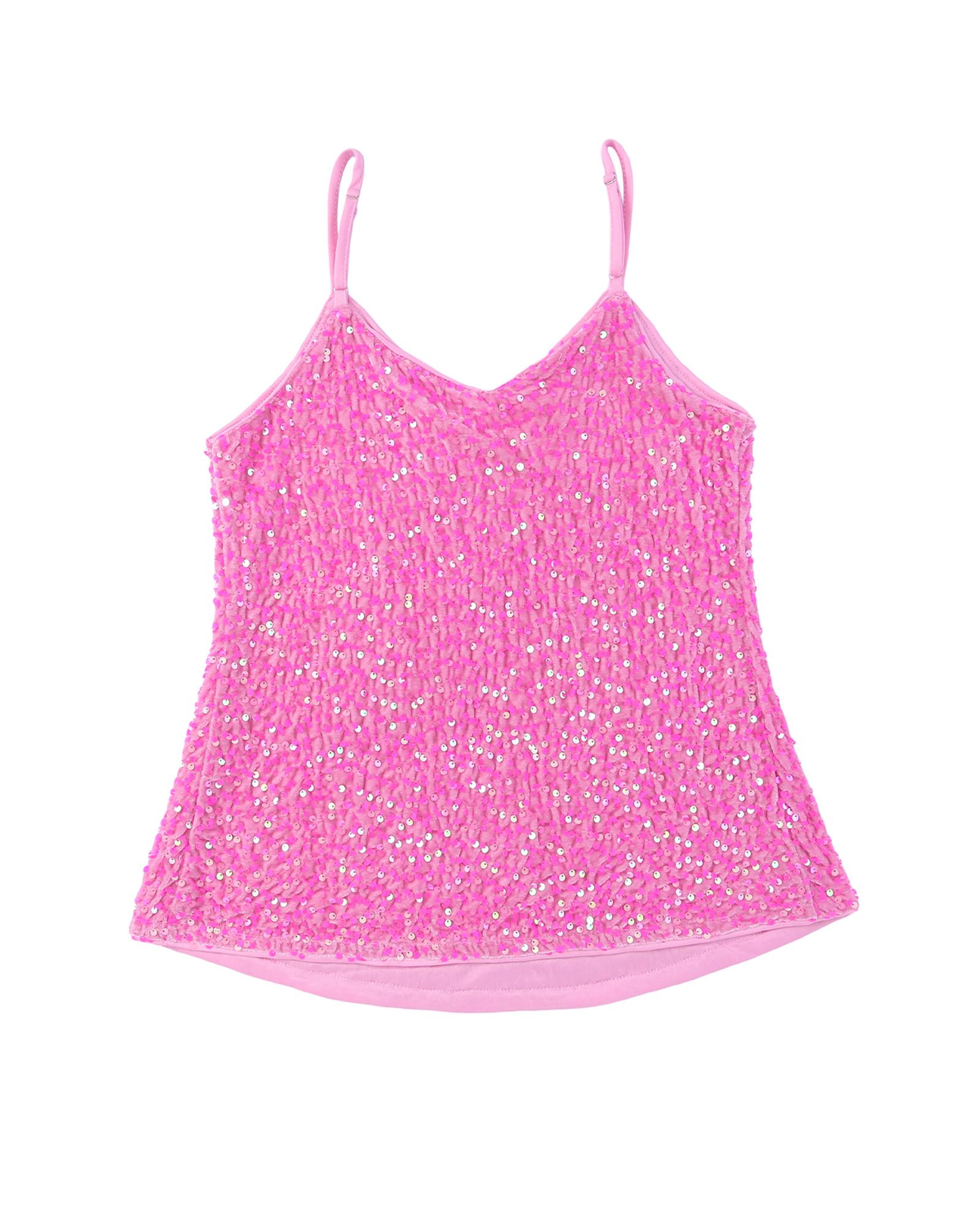 This stylish tank top features a trendy sequin design with adjustable thin straps, making it perfect for various occasions such as date nights or clubbing. Its semi-loose fit and comfortable fabric ensure a fashionable and comfortable wear experience. The top pairs well with high-waisted pants or skirts, offering versatile styling options.
