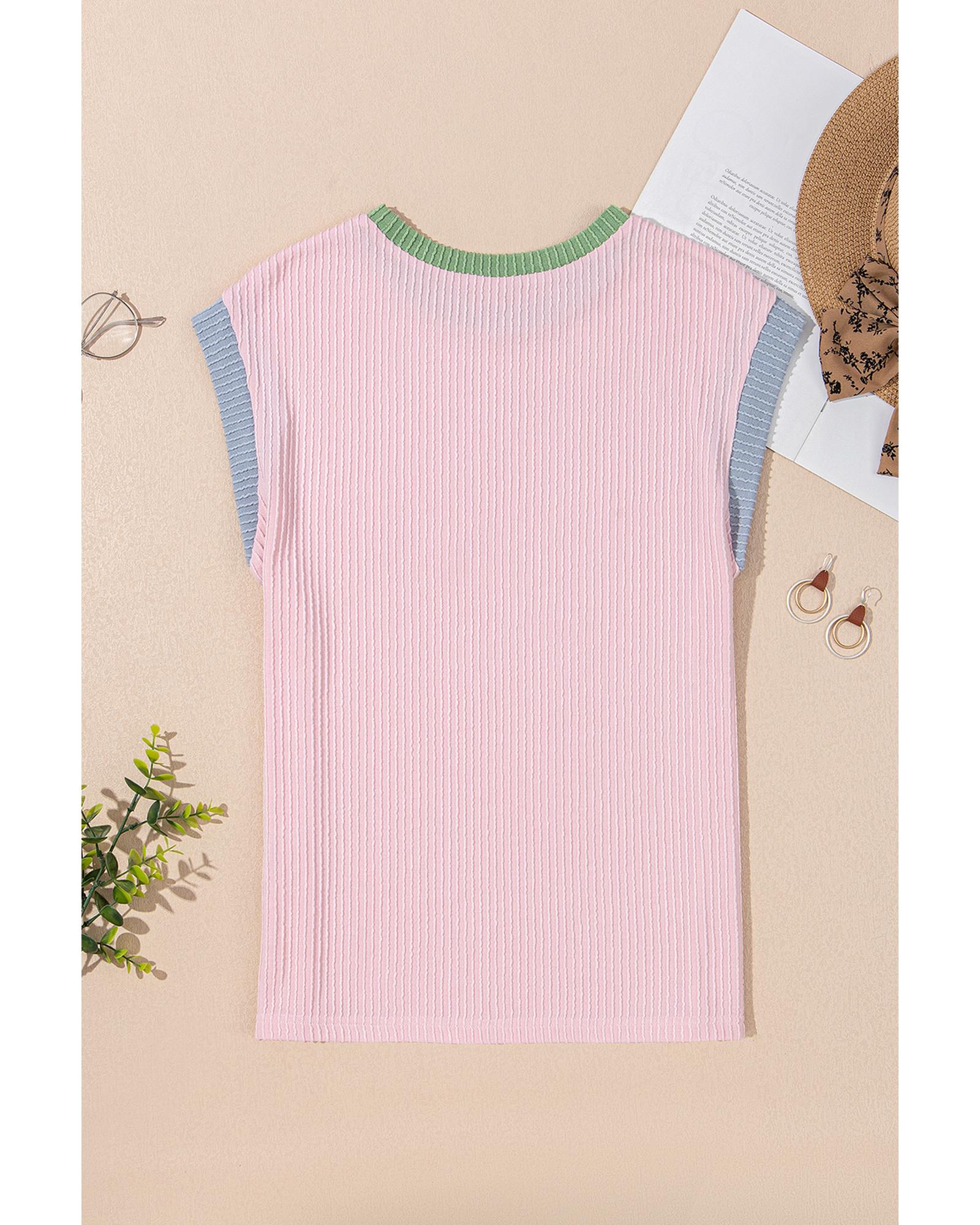 This stylish T-shirt features a vibrant colorblock design combined with a sparkling graphic detail, making it a fashionable choice for casual wear. Crafted from a soft and durable corded fabric, it offers comfort and longevity. Its modern aesthetic pairs well with jeans or denim shorts, making it versatile for everyday outfits.