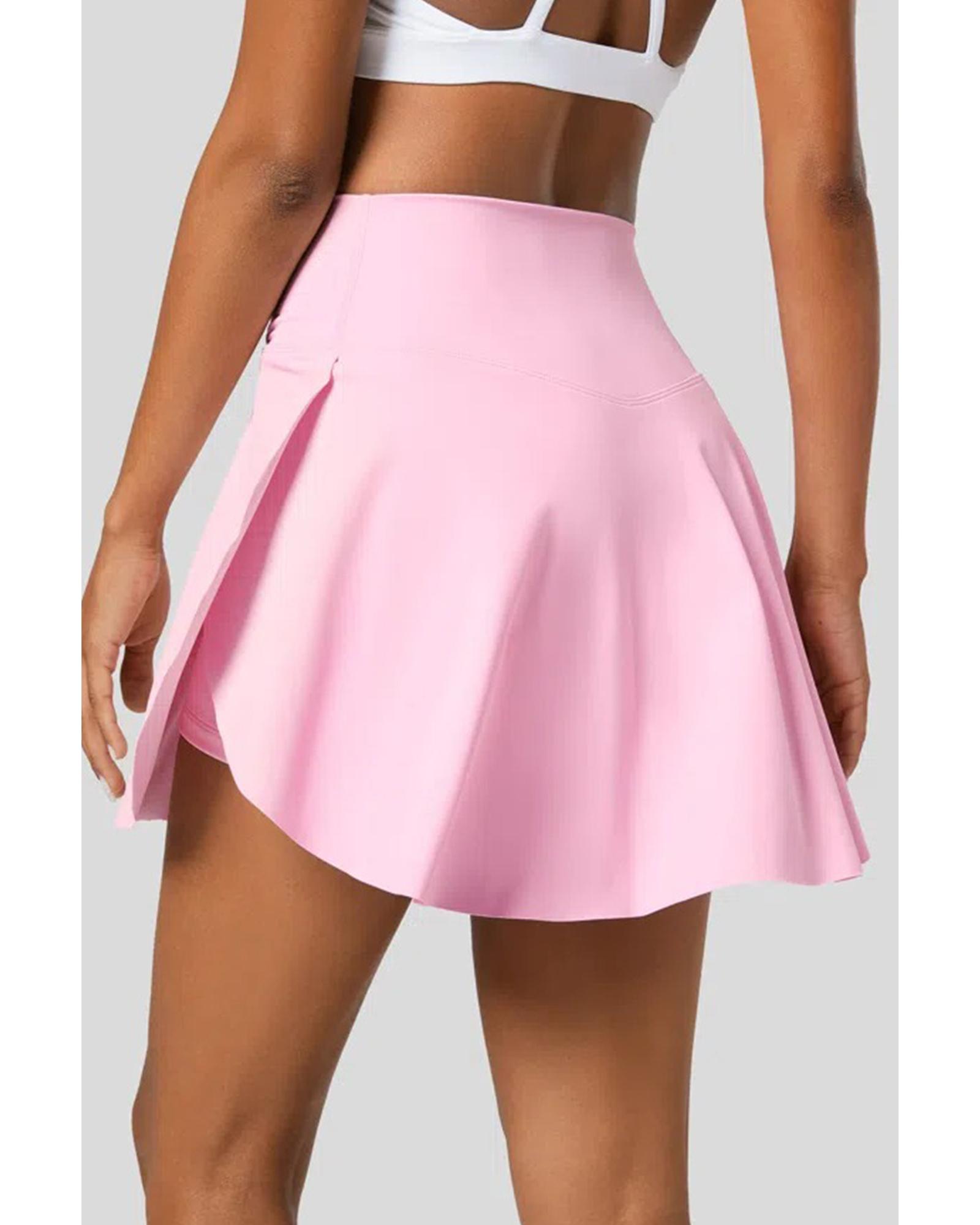 Pink Solid Pocketed Crossover High Waist Swim Skort – XL