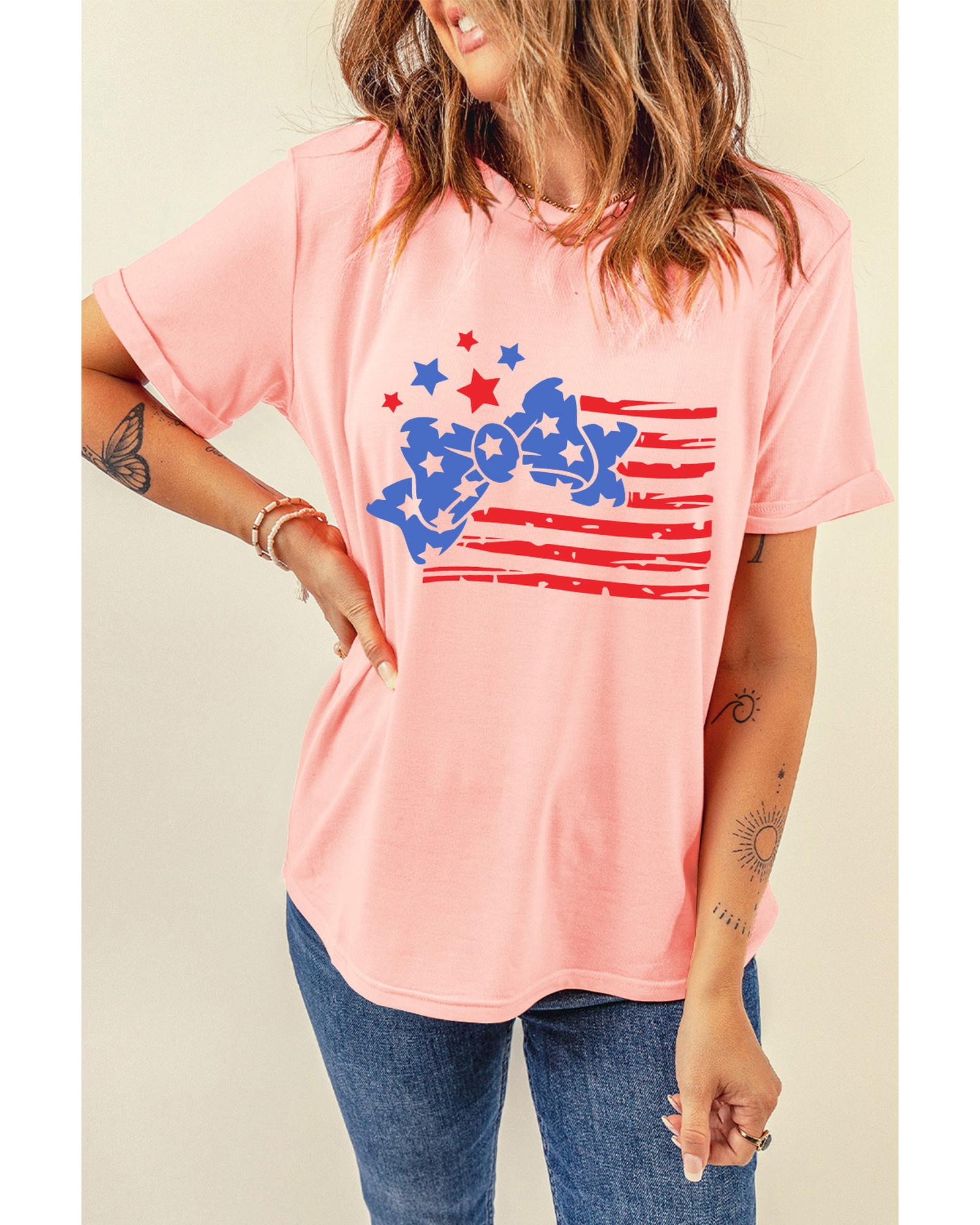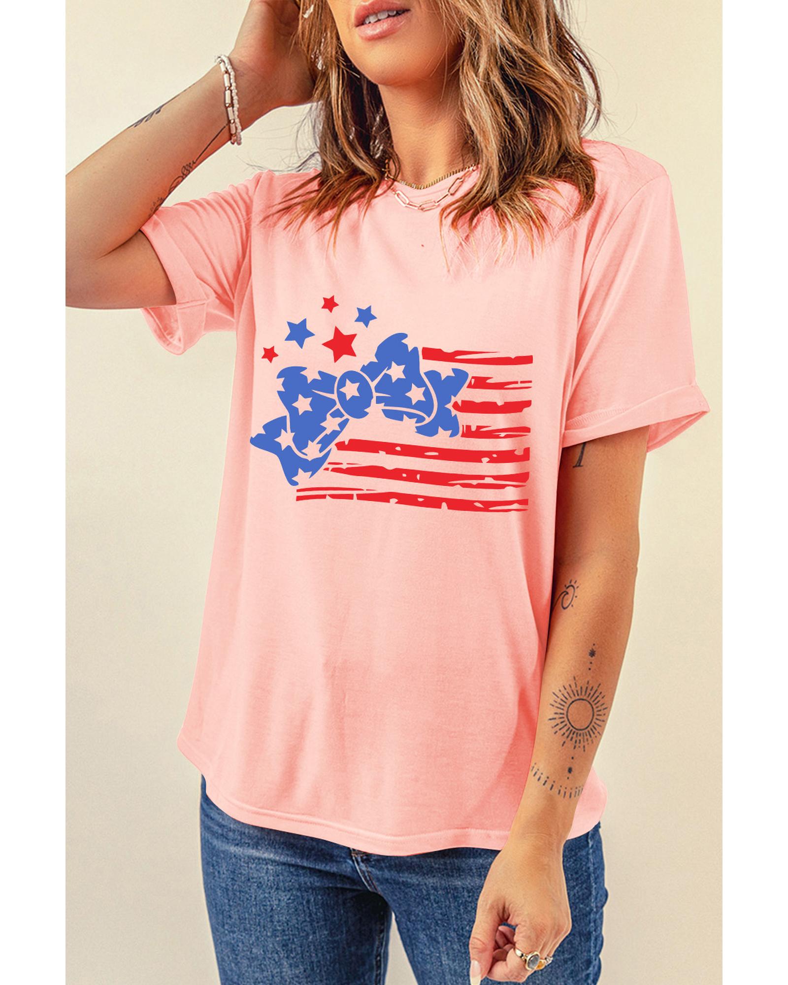 Pink Stars and Stripes Bow Knot Crew Neck T Shirt – XL