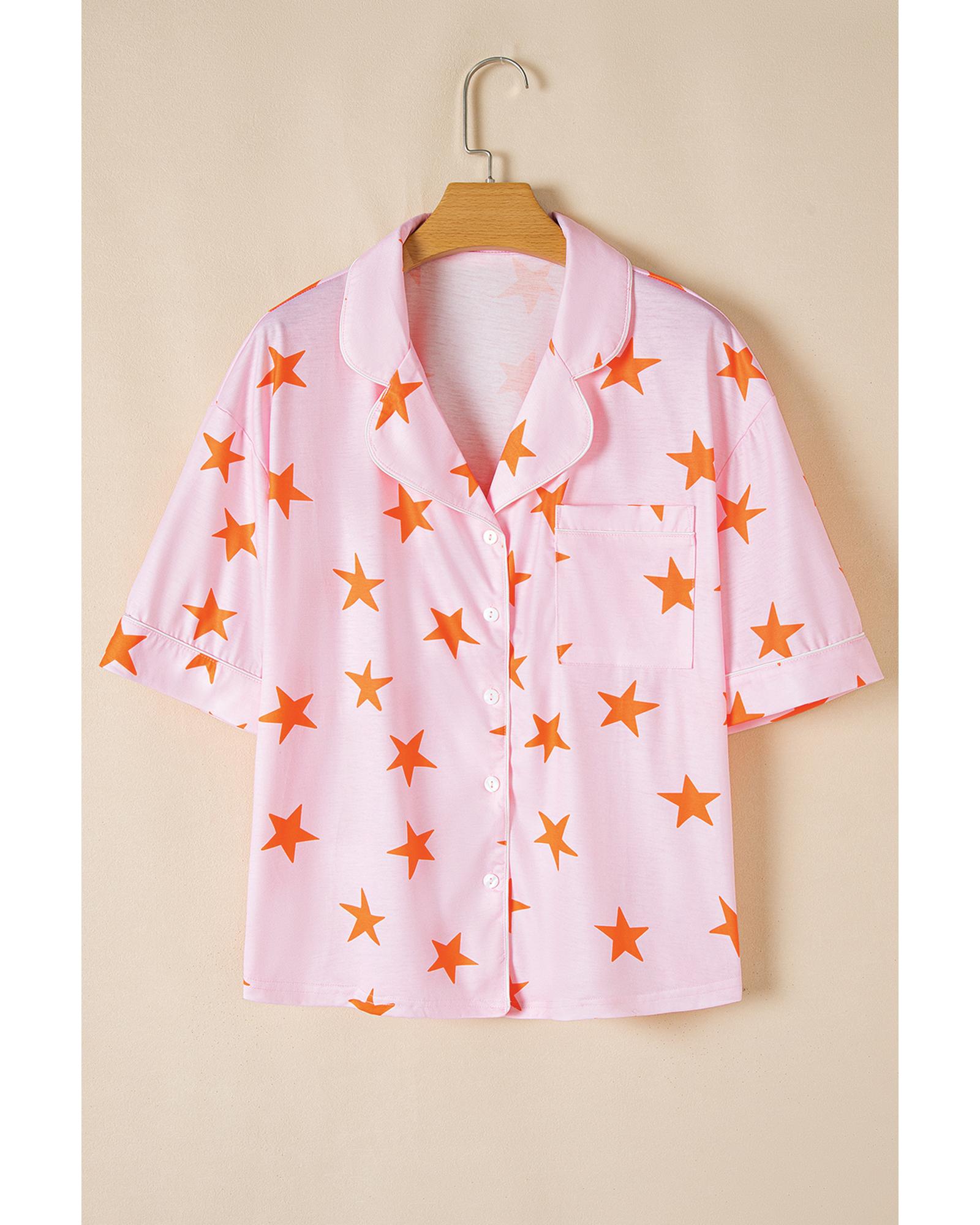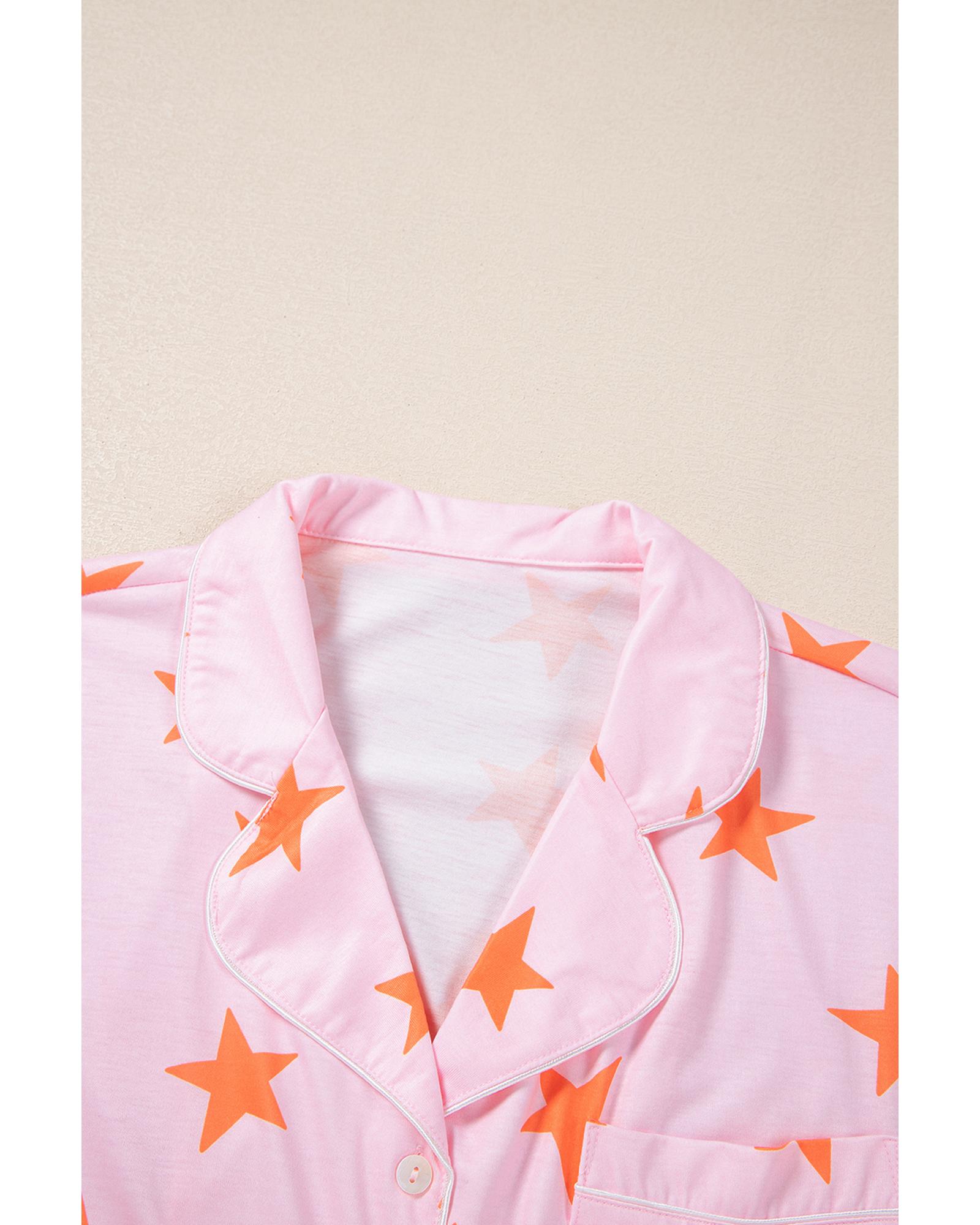 Pink Stars Short Sleeve Shirt and Shorts Bamboo Pajama Set – S