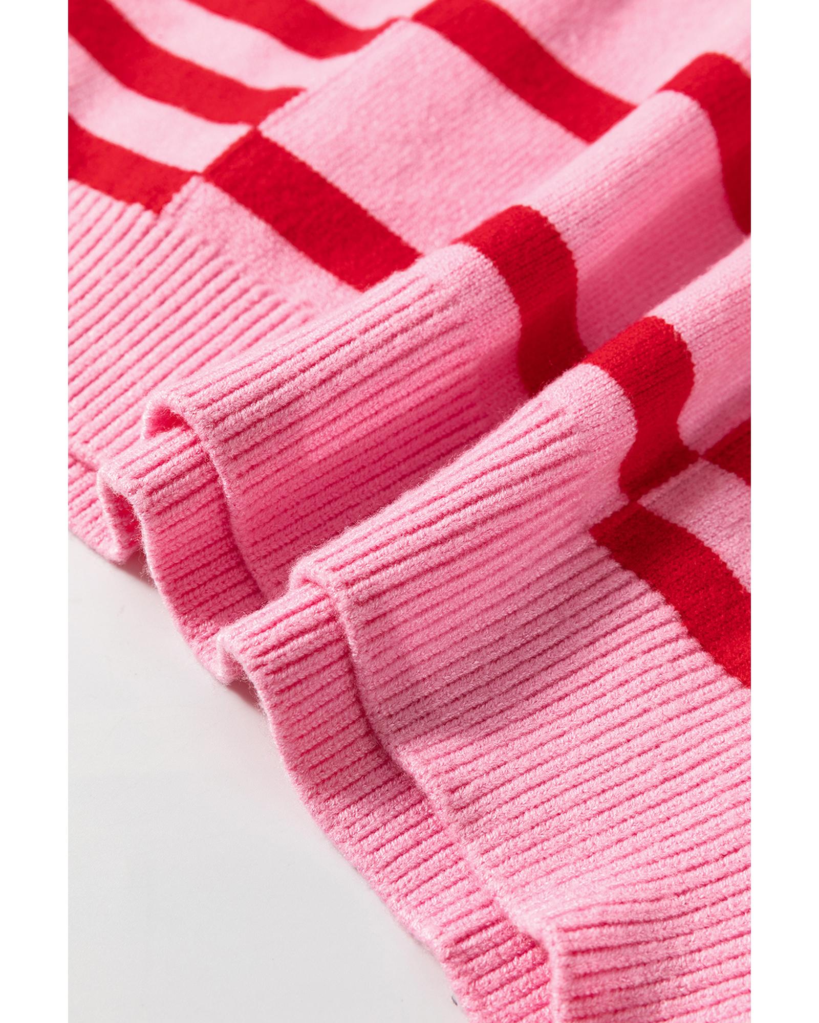 Pink Stripe Bubble Sleeve Drop Shoulder Ribbed Trim Sweater – M