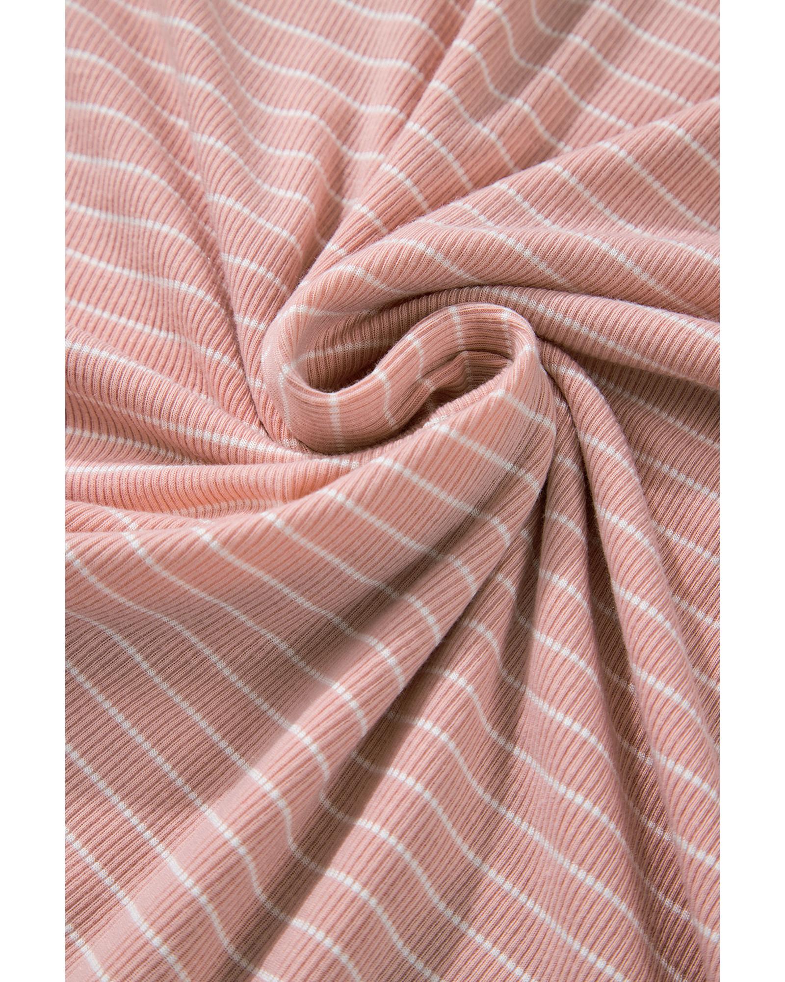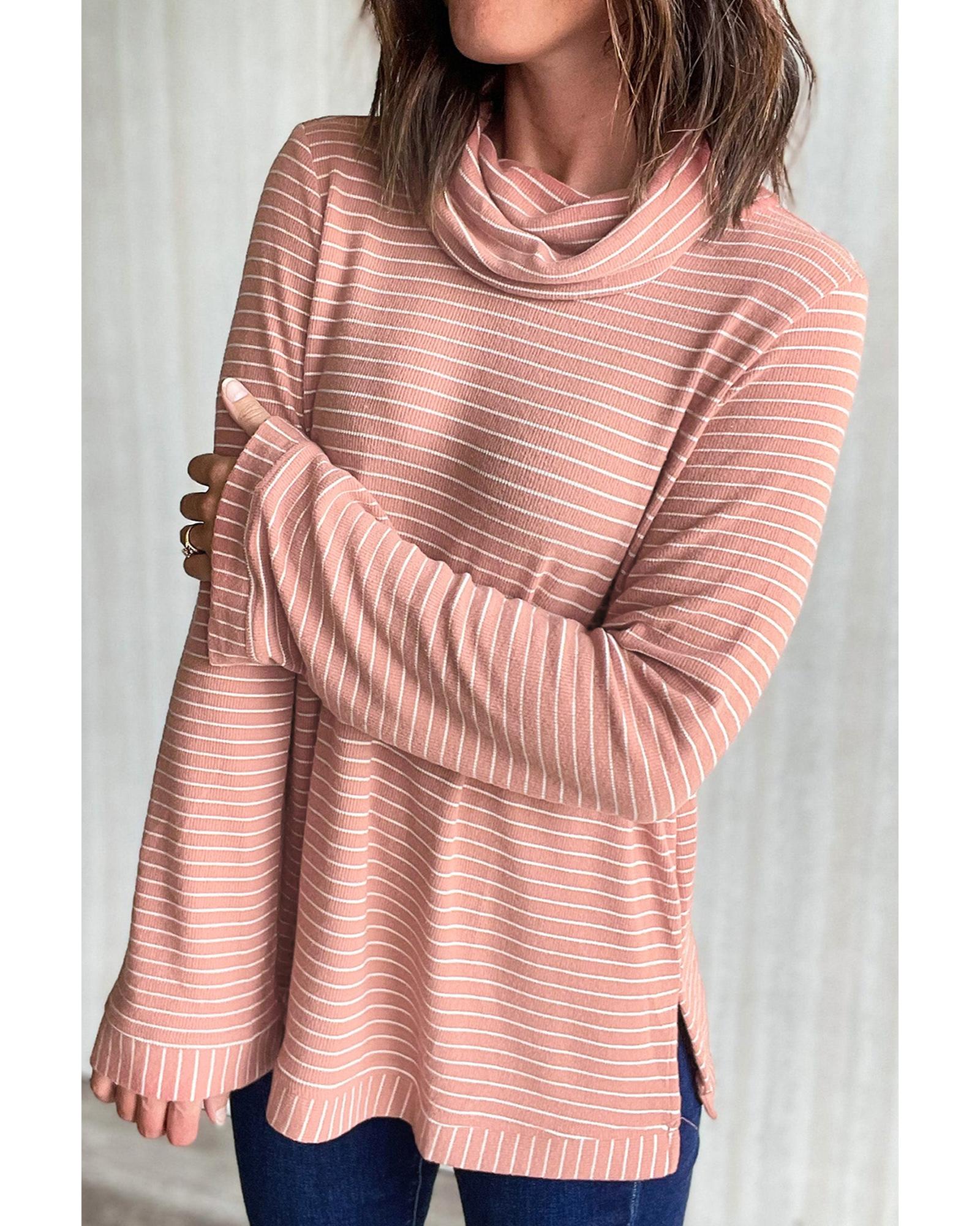 Pink Stripe Cowl Neck Side Slits Loose Fit Long Sleeve Top – XL