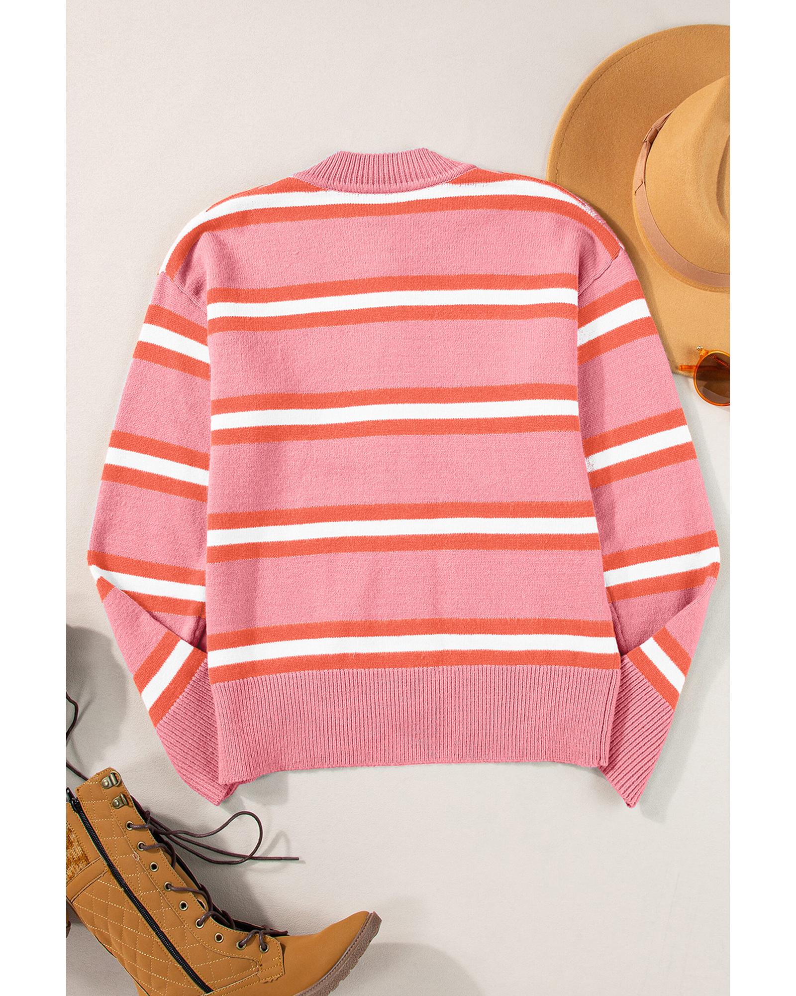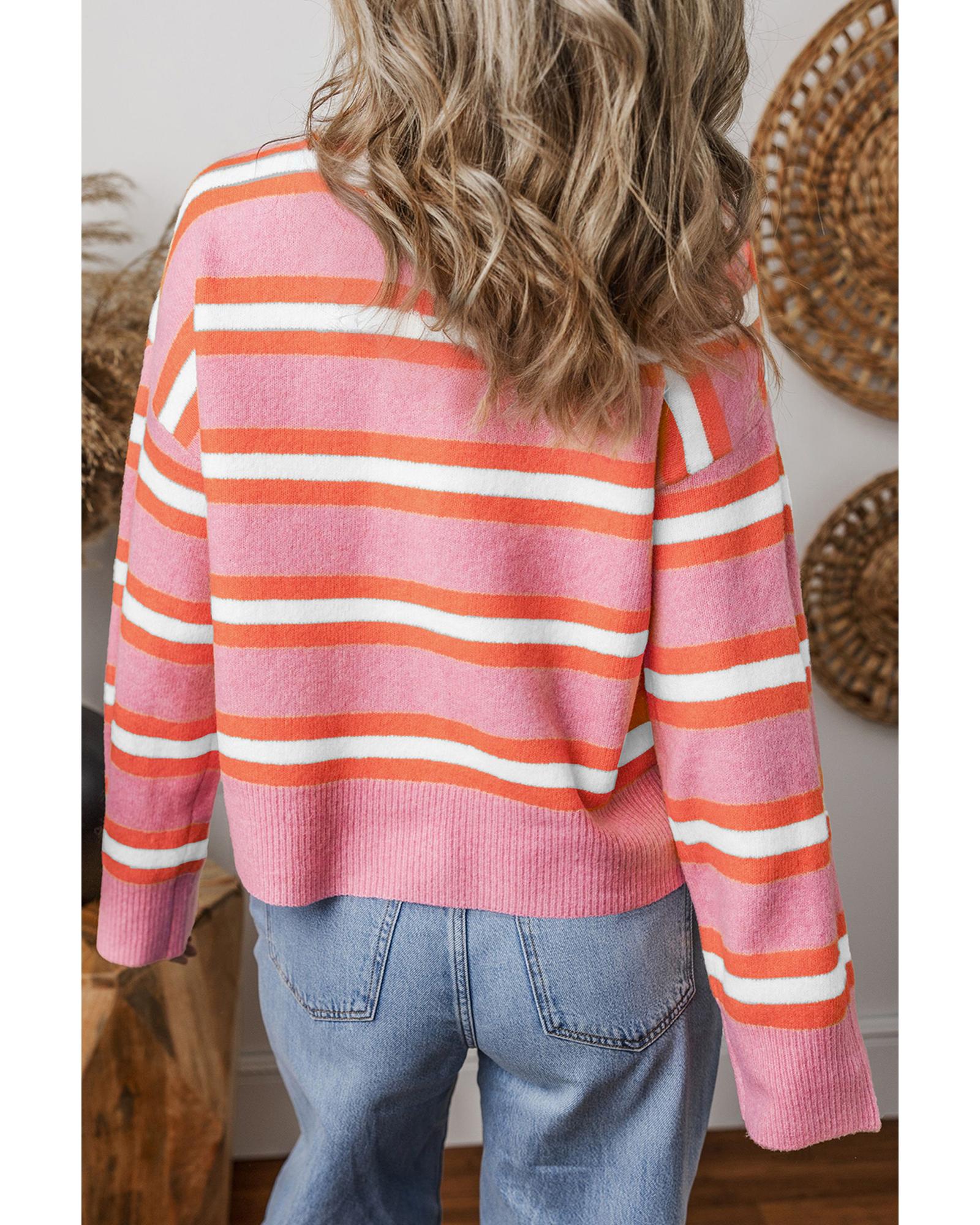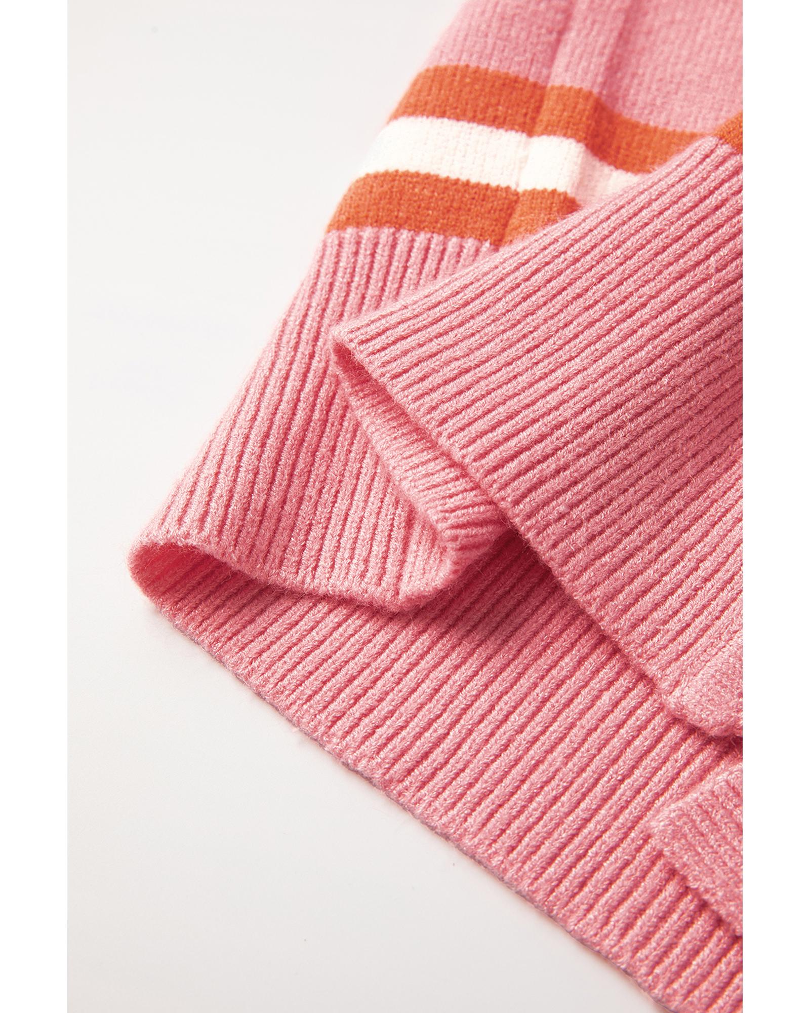 Pink Stripe Drop Shoulder Buttons Cardigan Sweater – M