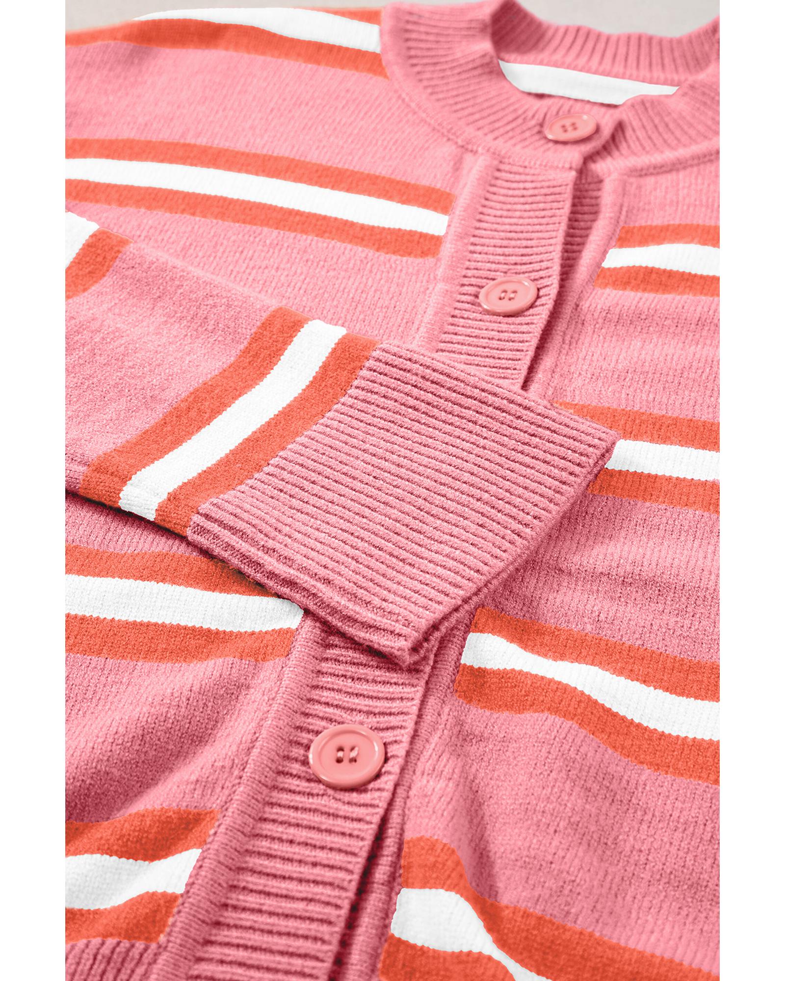 Pink Stripe Drop Shoulder Buttons Cardigan Sweater – XL