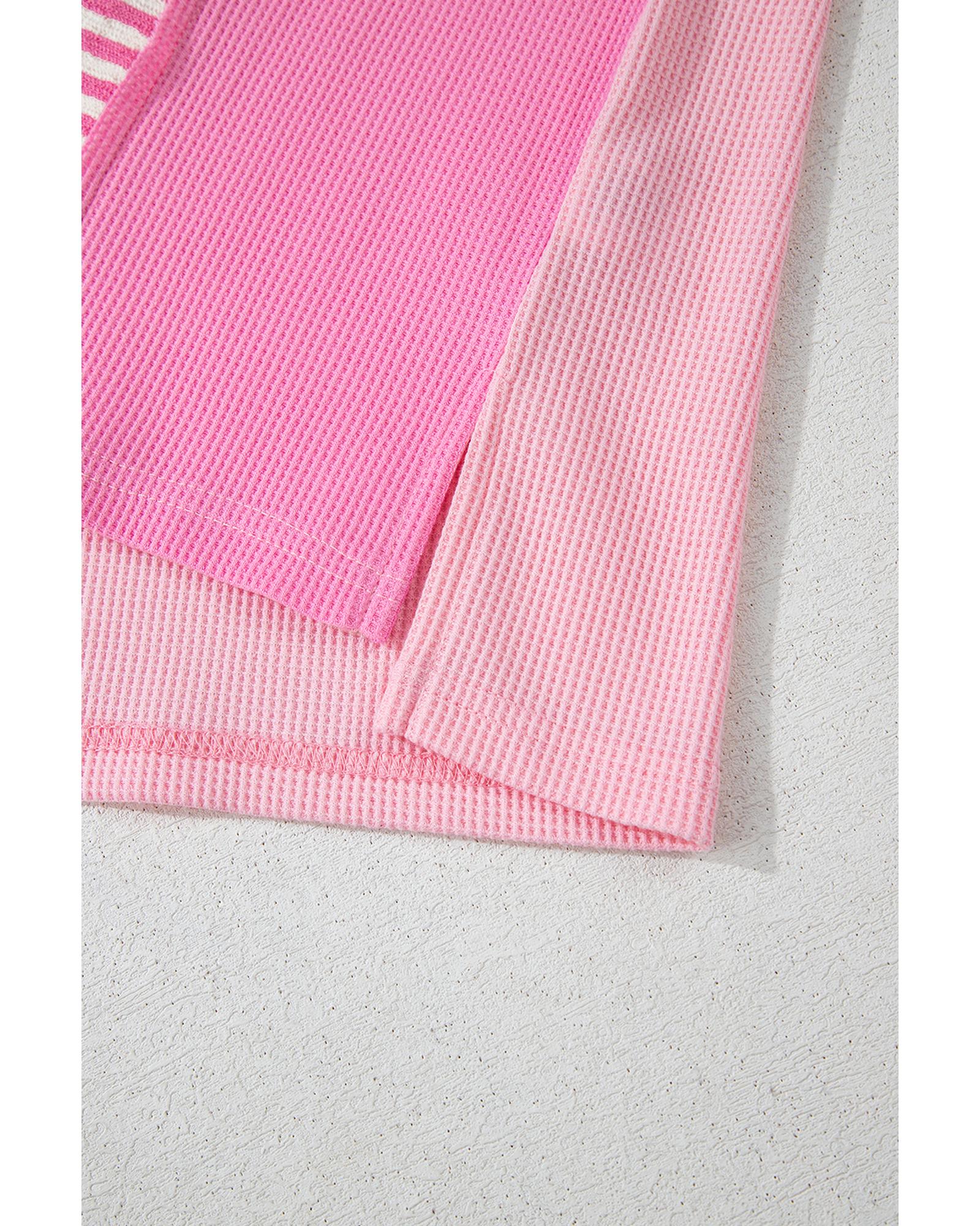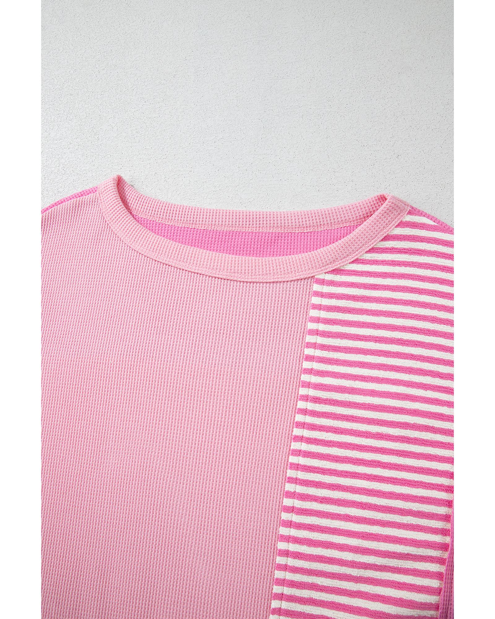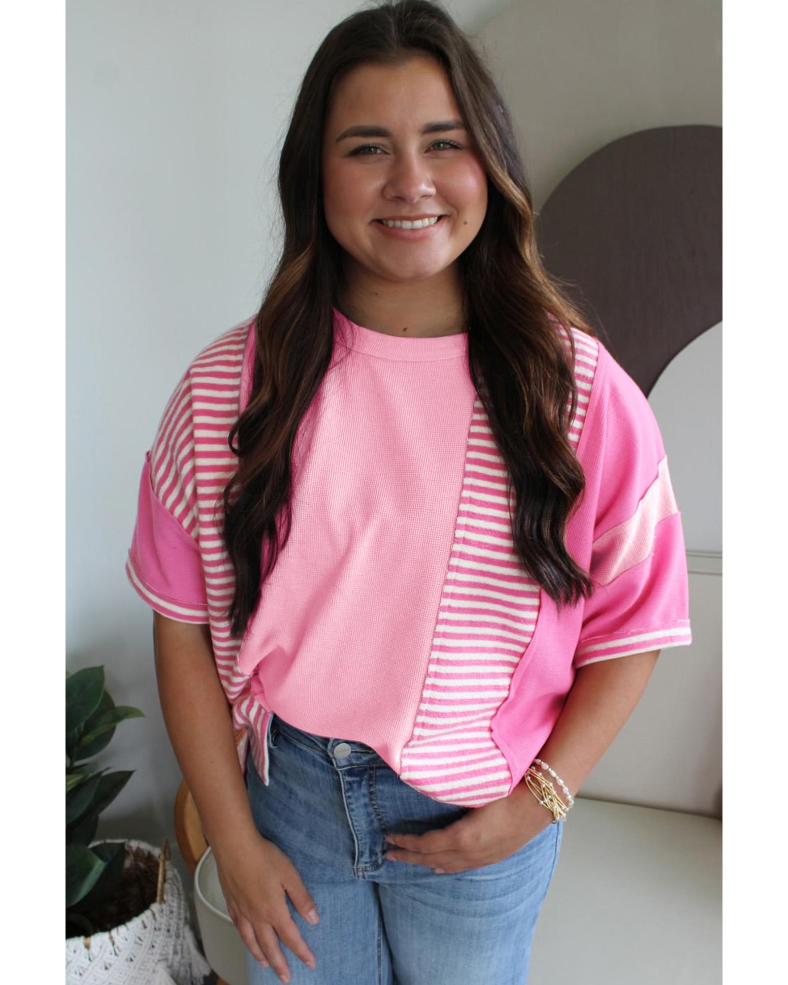 Pink Stripe Patchwork Colorblock Plus Size T Shirt – 2X