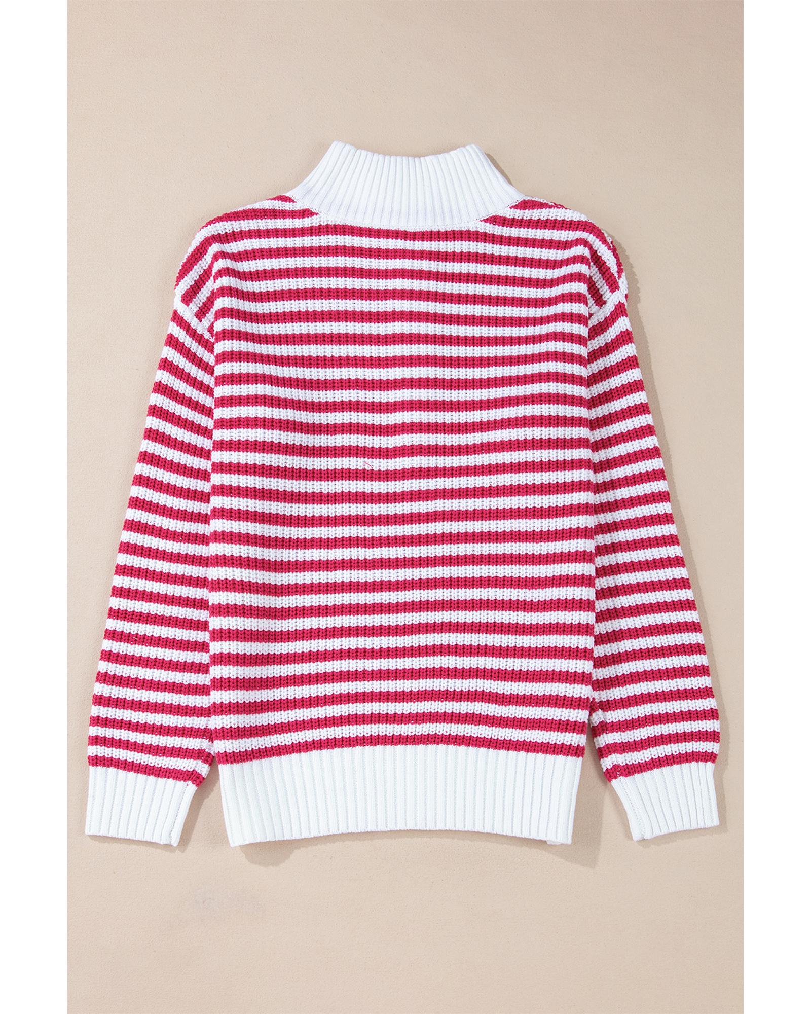 This sweater features a stylish striped design with a modern collar, combining comfort and fashion. Its drop shoulder cut provides a relaxed fit, making it suitable for various occasions. The convenient zip-up closure allows for easy wear and removal, offering both practicality and style.