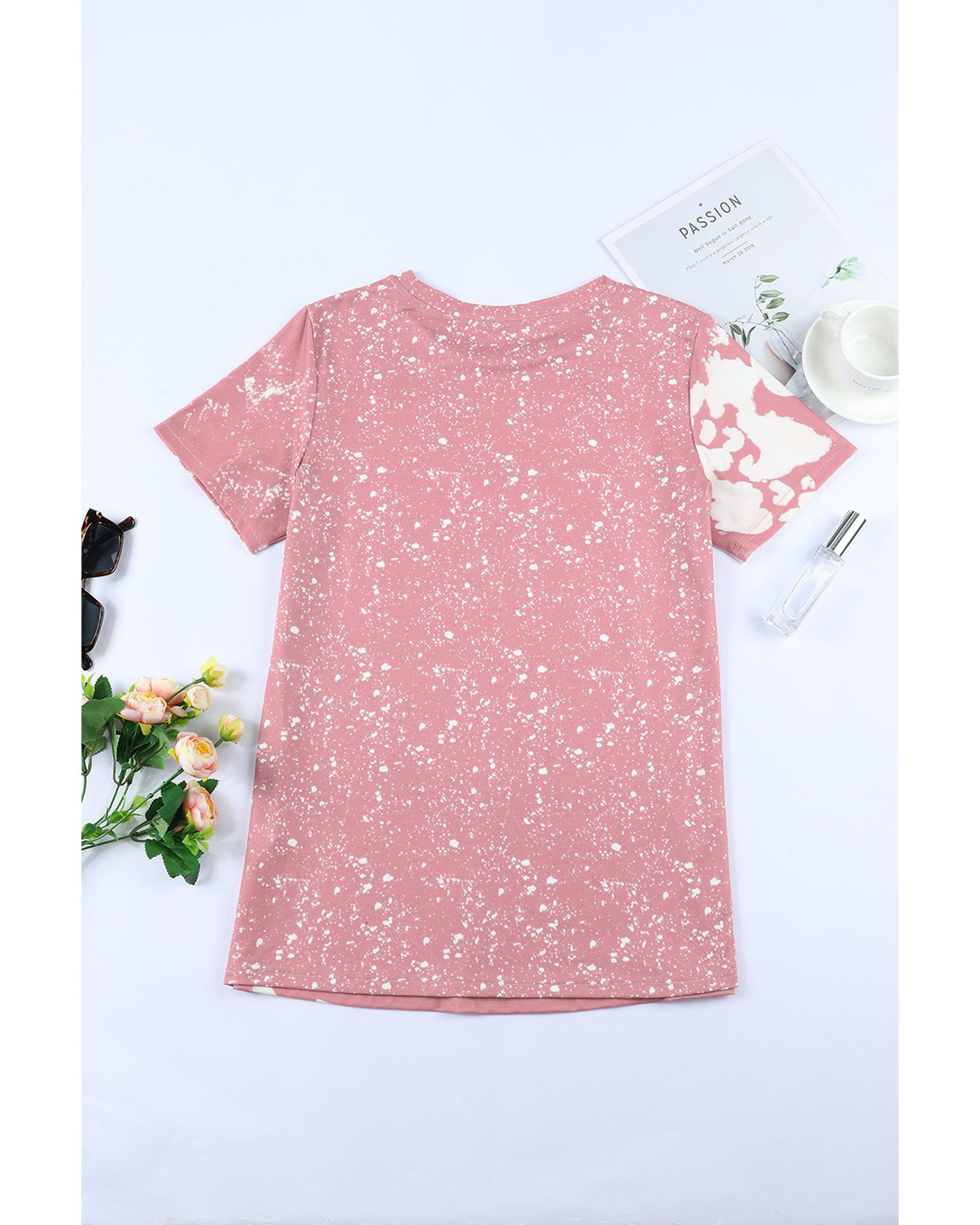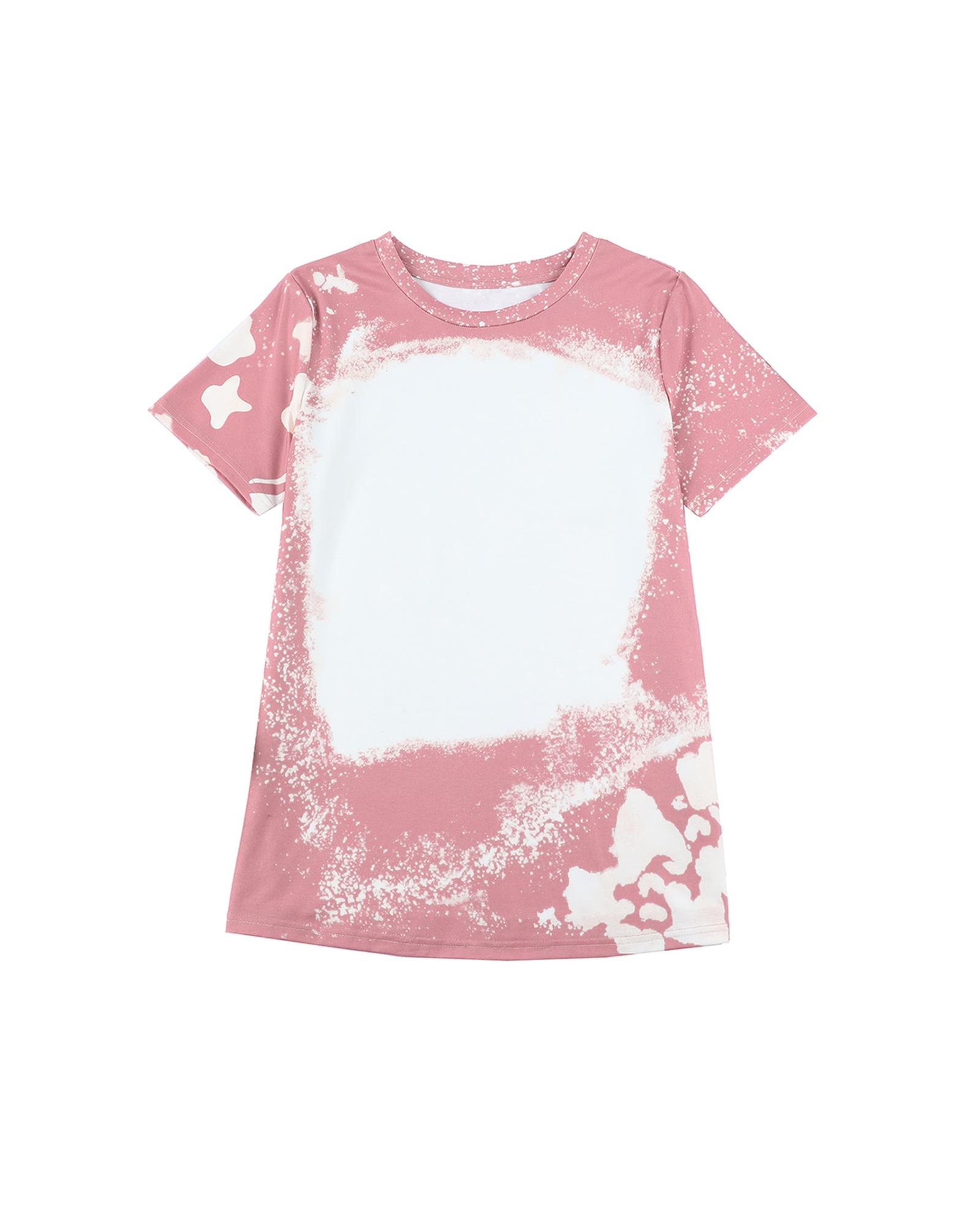 This short sleeve T-shirt features a trendy tie dye pattern combined with a bleached design, offering a stylish and casual look suitable for various ages. Made from soft, stretchy fabric, it provides comfort and a regular fit, making it ideal for pairing with jeans or shorts for everyday wear.