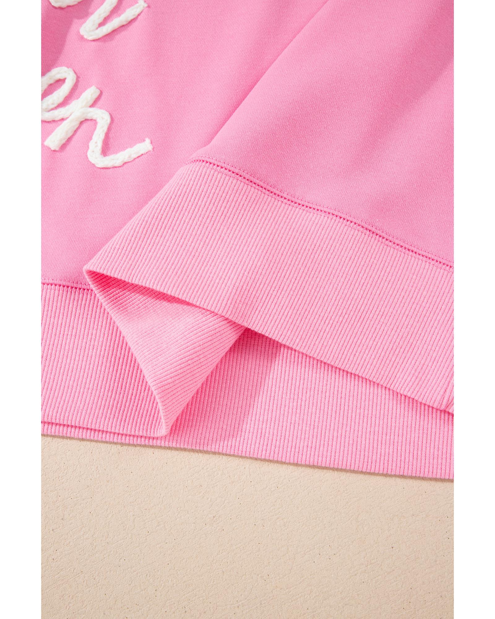 Pink Touch Down Rugby Football Embroidered Plus Size Sweatshirt - 2X