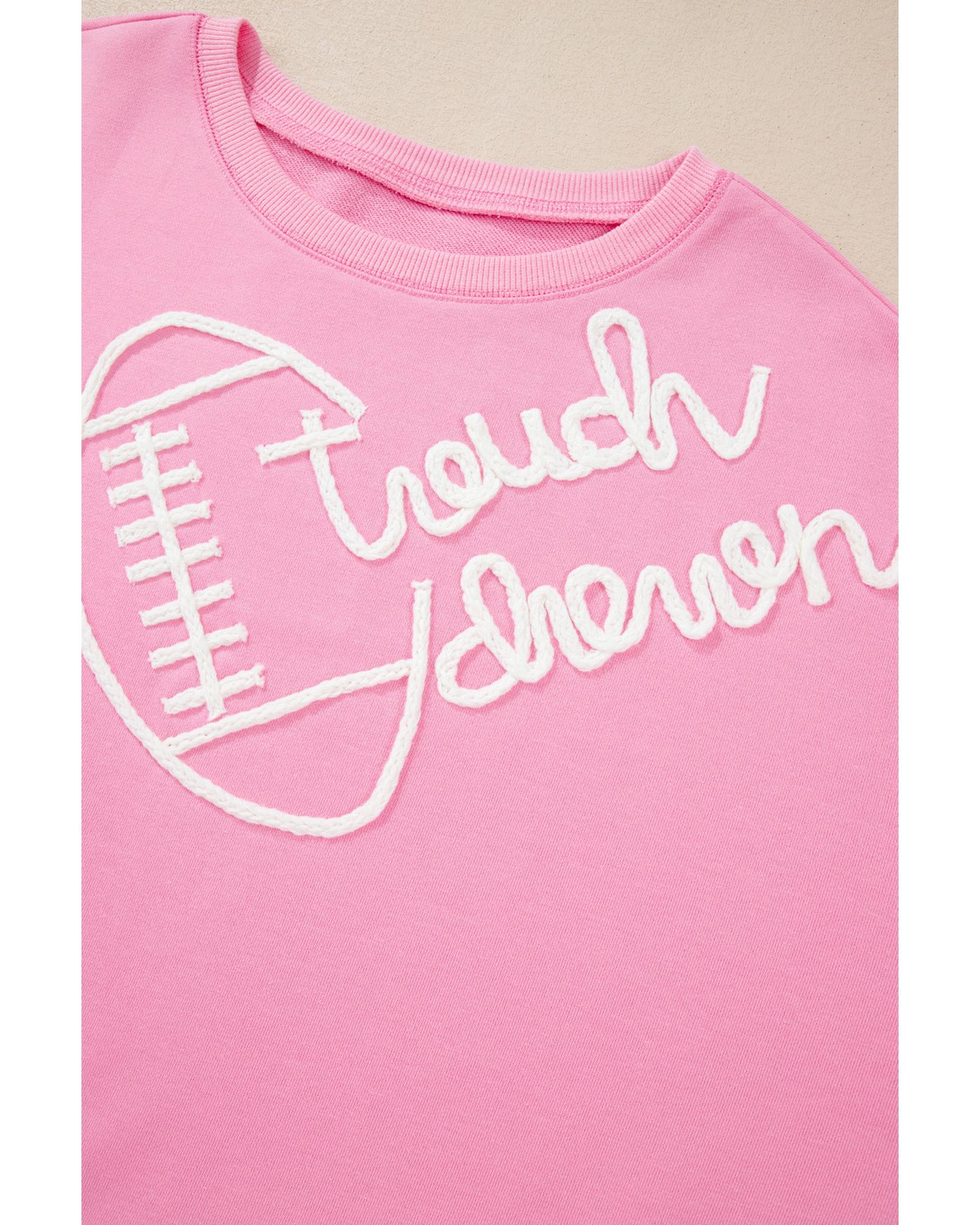 Pink Touch Down Rugby Football Embroidered Plus Size Sweatshirt – 4X