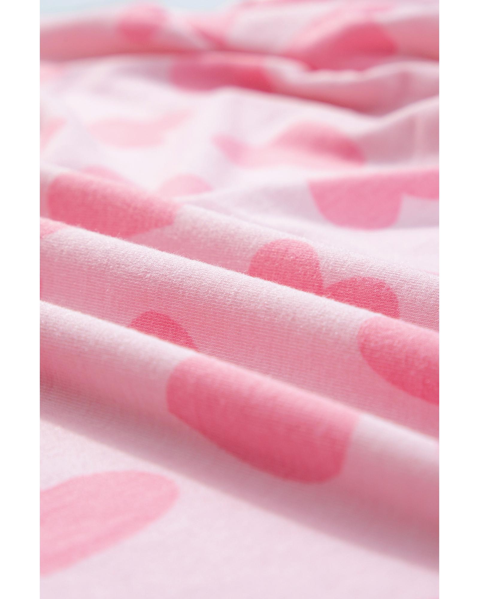 Pink Valentine Heart Shape Print Long Sleeve Top Shorts Lounge Set – XL