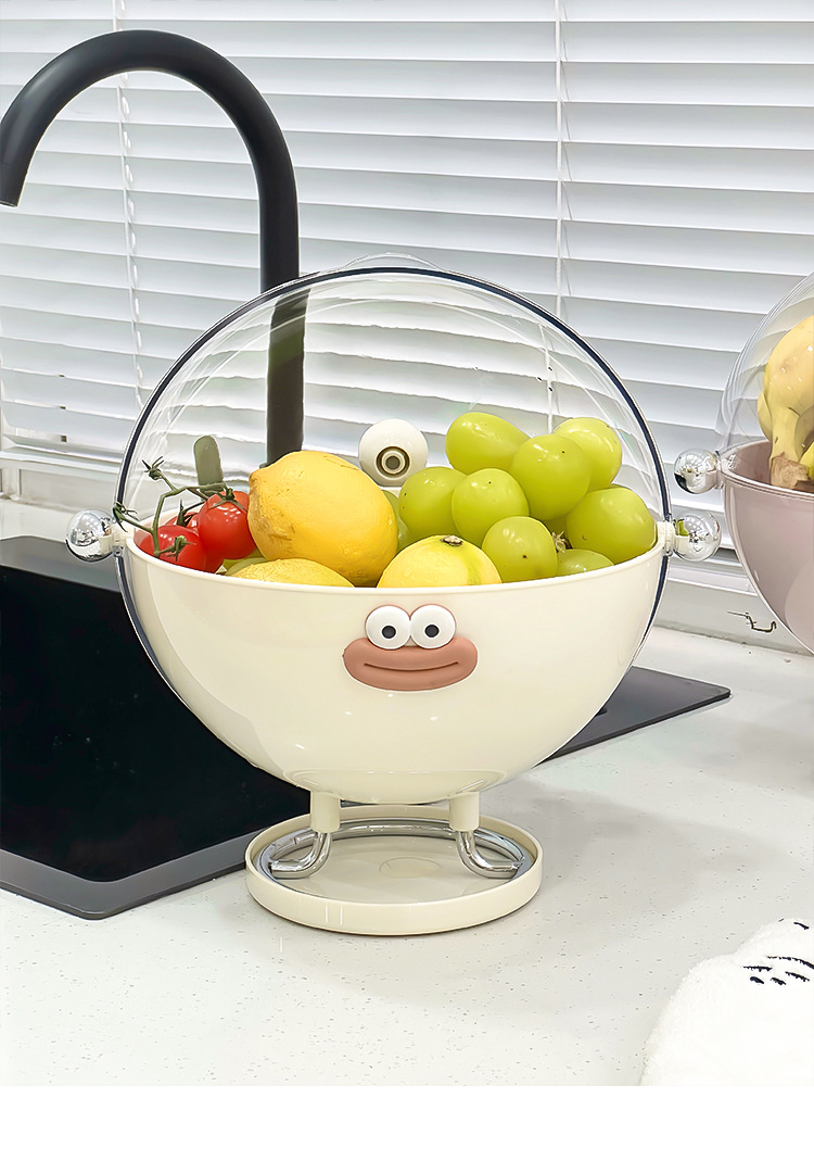 This charming covered fruit and snack bowl combines playful design with practical features, making it a delightful addition to your living room or kitchen. It is designed to keep your fruits, snacks, and dried goods fresh and organized while adding a whimsical touch to your decor.