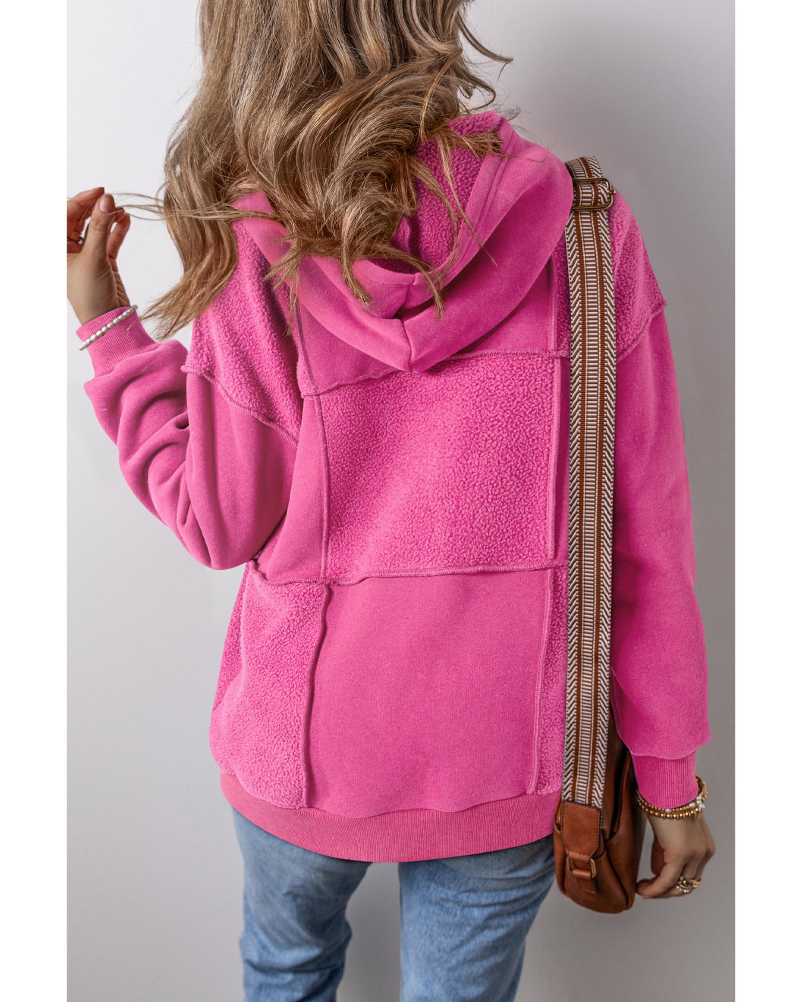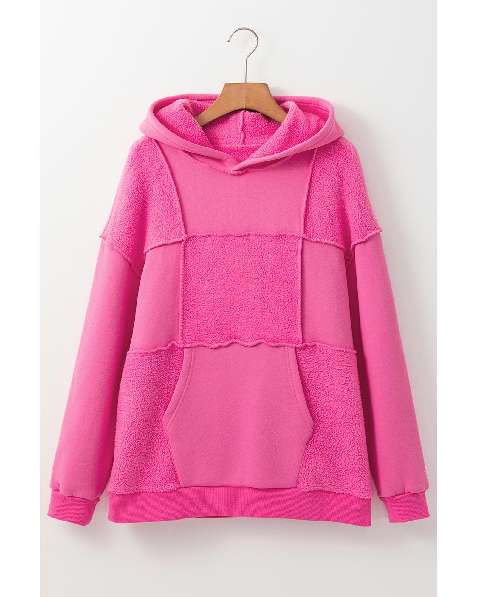 Pitaya Pink Mineral Wash Terry Patchwork Drawstring Hoodie – XL