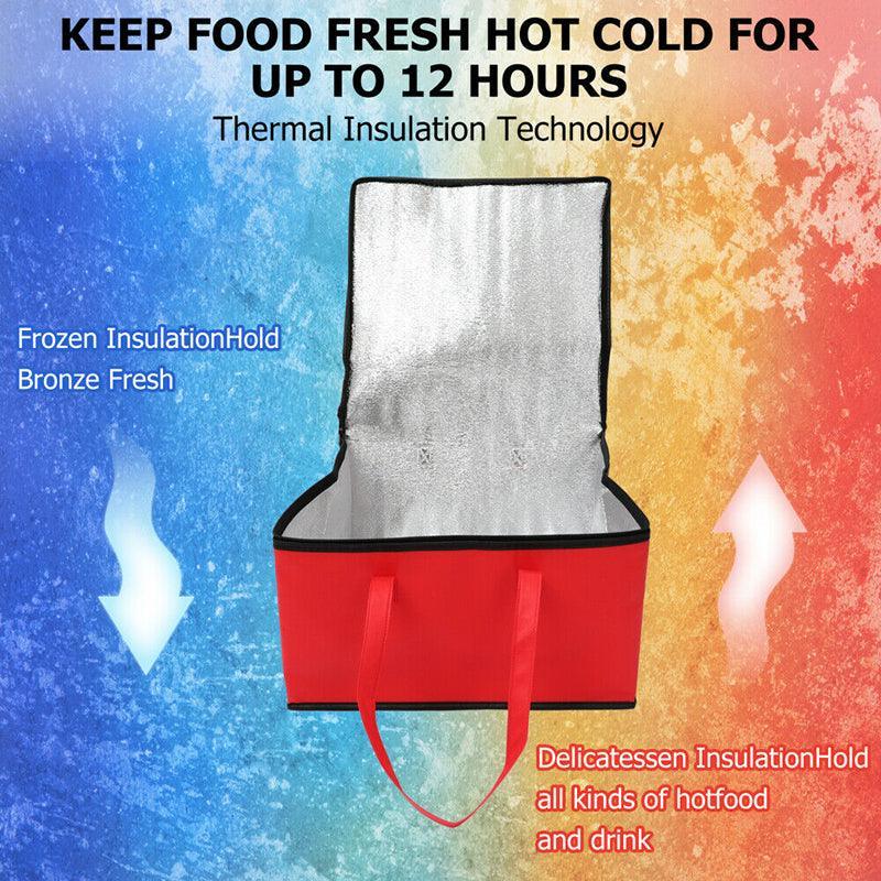 This insulated thermal food container is designed to keep pizzas hot and fresh during delivery. It features a spacious compartment capable of holding multiple pizzas, ensuring they arrive in excellent condition. The bag is made from durable materials, easy to clean, and includes adjustable straps for comfortable carrying. A zipper closure provides secure transportation, making it suitable for professional delivery or transporting food for gatherings.
