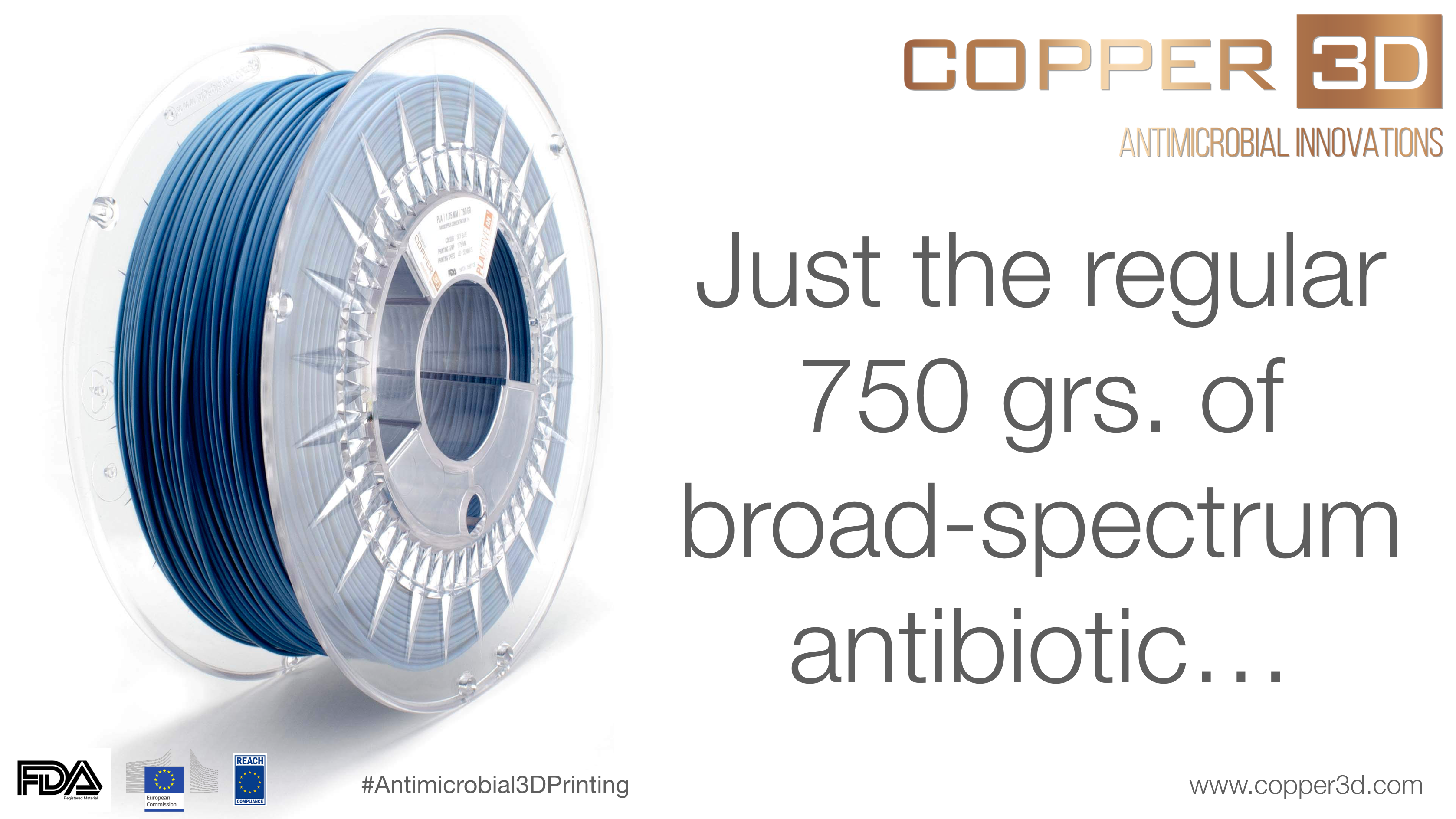 This innovative 3D printer filament features antibacterial properties and is suitable for medical and other applications requiring high hygiene standards. It is made from a high-quality compound with a scientifically validated Nano-Copper additive, providing effective antimicrobial action. The filament is easy to print, biodegradable, and compatible with multi-extrusion systems, making it ideal for complex projects.