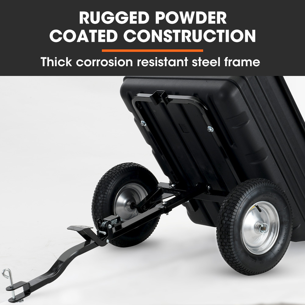 PlantCraft Poly Dump Cart, 272kg Load Heavy Duty Tipper Trailer, 16-inch Tyres, for Ride-on Lawn Mower Tractor, ATV, Quad Bike