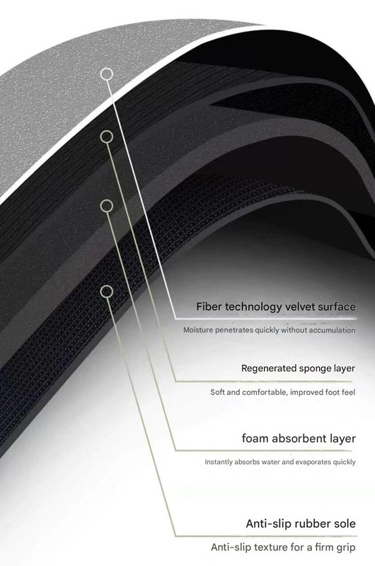 • Material: Diatomaceous earth top layer, water-locking middle layer, rubber base