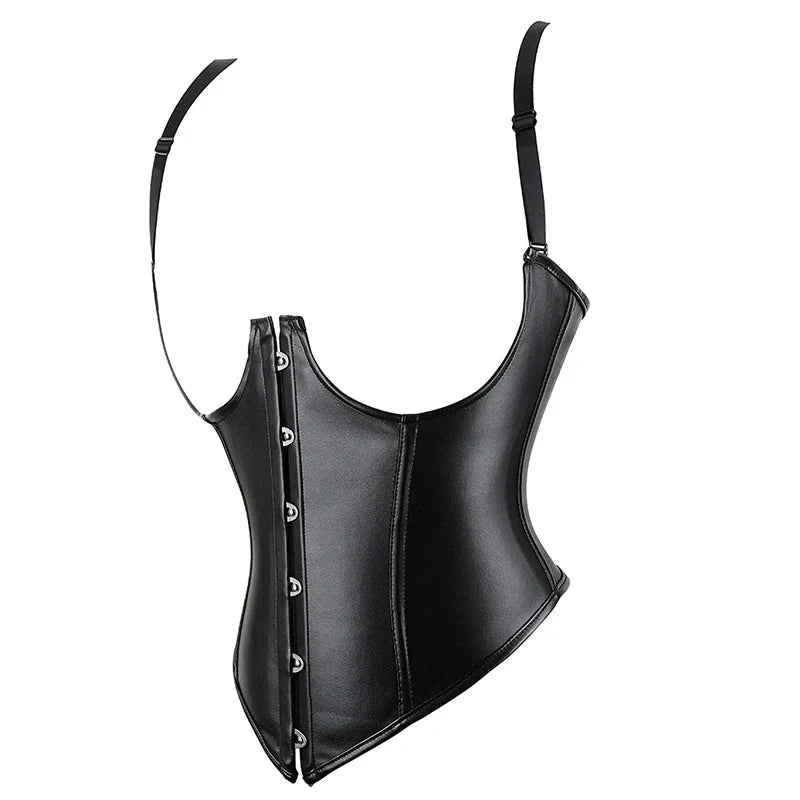 Plus Size Black Leather Corset Waist Trainer Vest With Strap 10 Plastic Bones S-6Xl – S