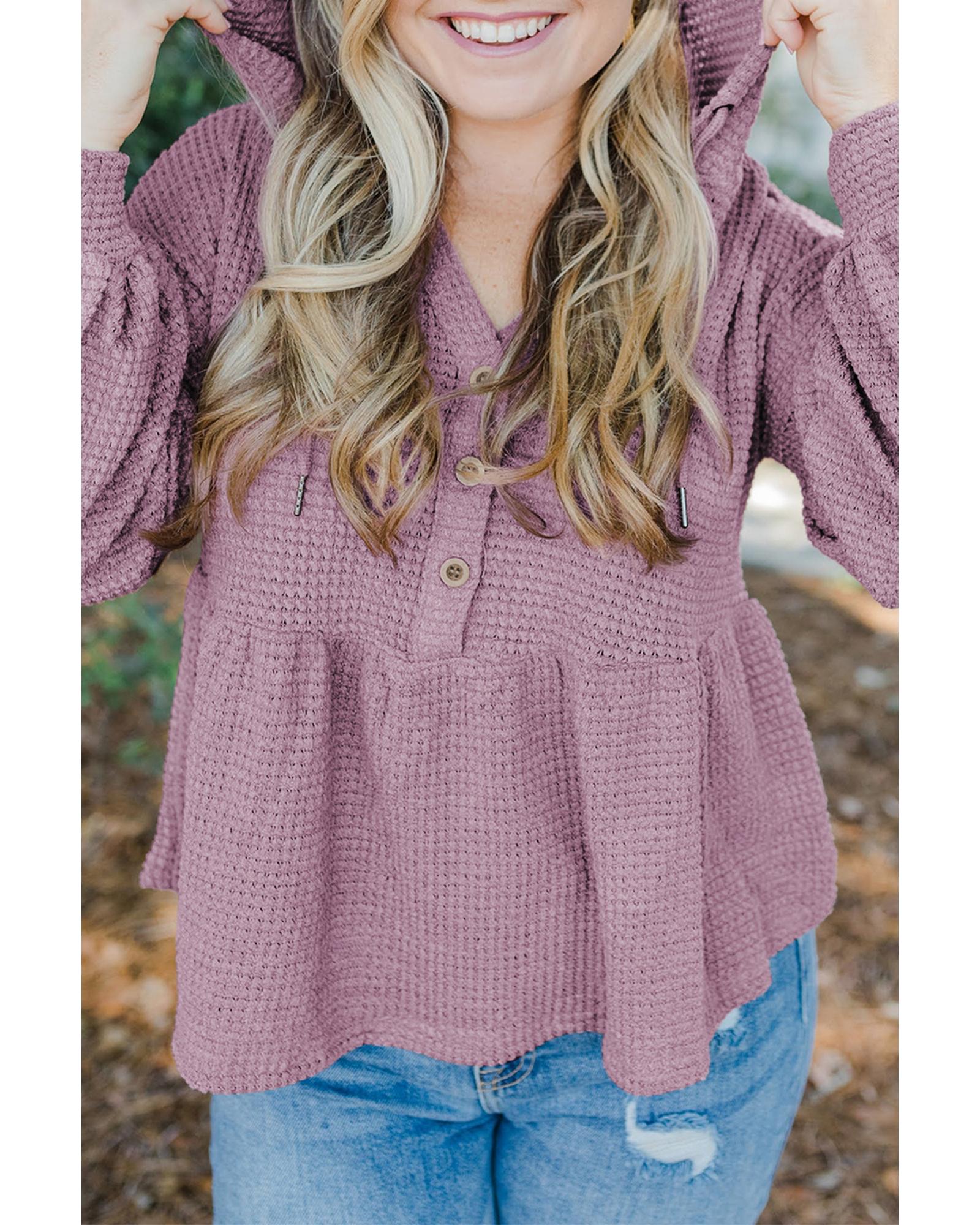 This plus size hooded waffle knit top offers a stylish and comfortable option for everyday wear. Designed with a trendy fitted look, it features a hood for added warmth and a unique waffle knit texture that adds visual interest. Made from high-quality fabric, it provides a flattering fit suitable for various body types, combining fashion and comfort effortlessly.