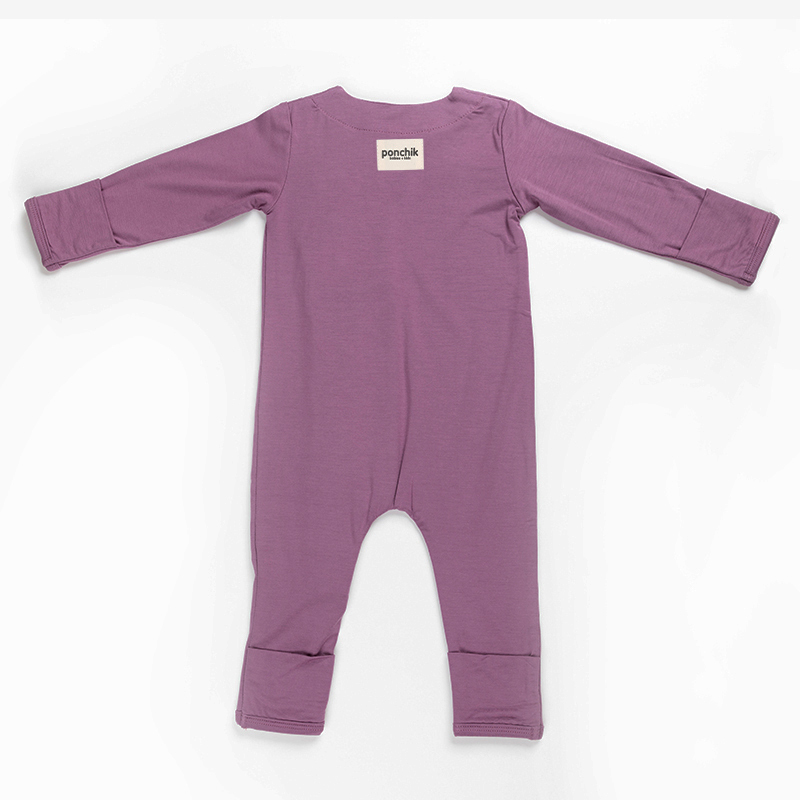 Ponchik Babies + Kids – Magnetic Bamboo Body Suit Onesie – Plum – 12-18m