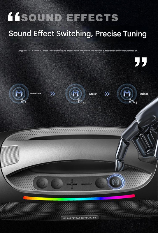 - Multiple playback modes including TF card, USB, AUX, and Bluetooth